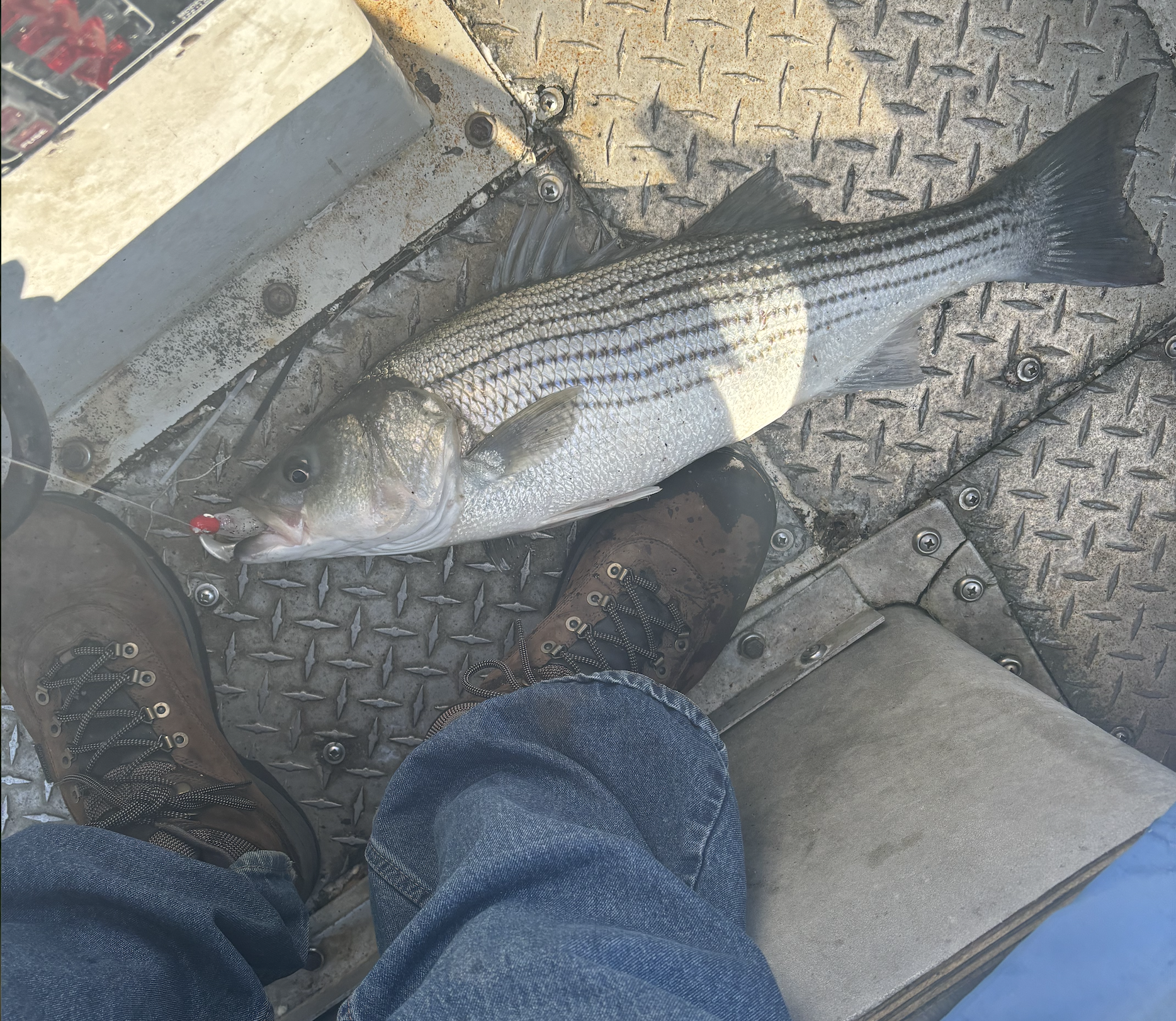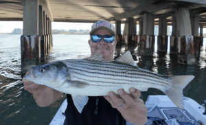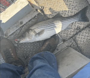 Big Bird Cropper was out there fishing today’s beautiful weather and he used Roy Rigs to catch and release some short stripers. The biggest was this fish that was approximately two feet long. 🙂