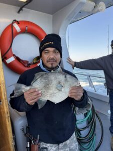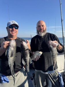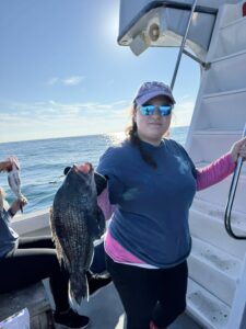 Captain Chris Mizurak of the Angler took a late departure to let the wind settle down and it was a good call. Anglers on board today had plenty of sea bass, some flounder, a few porgy and a nice triggerfish.