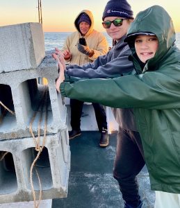 Cameron & Chase gave today’s reef blocks a shove at Taylor Thornton’s Memorial Reef. We held a course offshore.