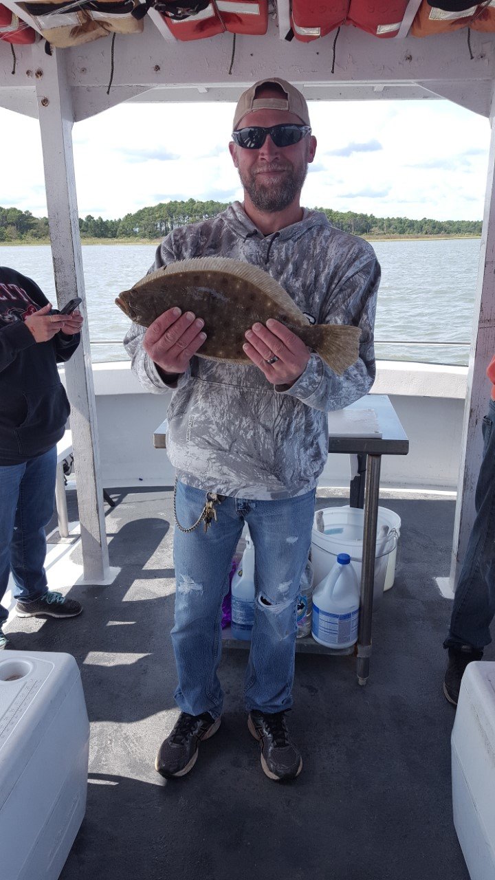Captain Drew Zerbe of the Tortuga put Nick Gleco from Sweet Valley, PA on this nice keeper flounder behind Assateague Island this afternoon. The flattie was caught on a squid and shiner combo and netted by deckhand Serge Garder.