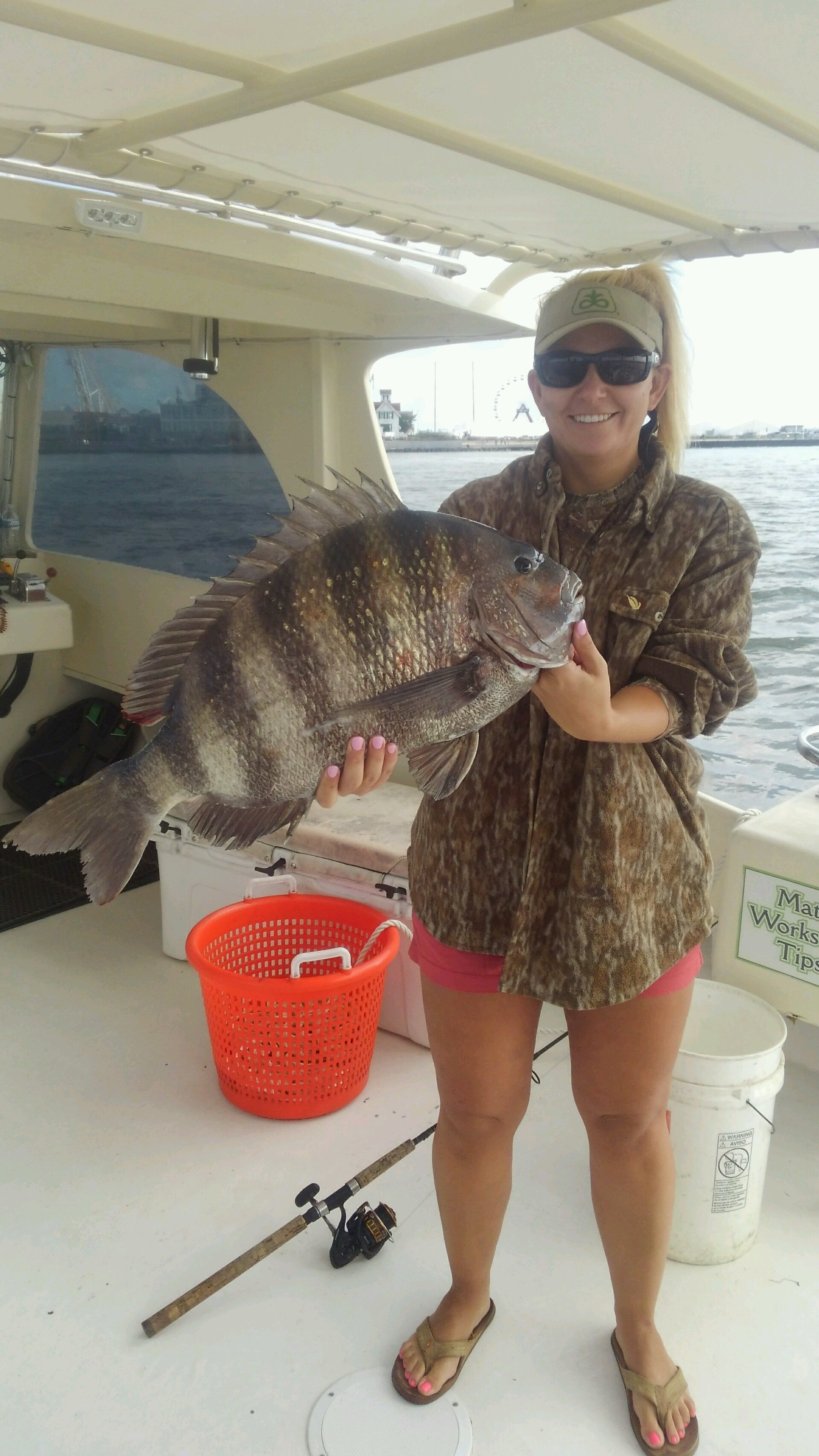 Away from the tournament Captain Jason Mumford of Lucky Break Charters had a crazy good morning fishing the inlet for sheepshead. Captain Jason and Amanda Heilman combined for four nice sheepshead including a huge 13.5 pound bruiser caught by Amanda.