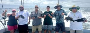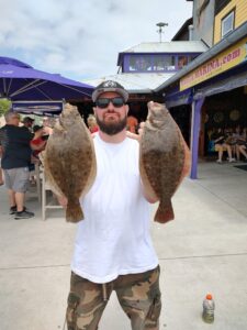 Captain Kane Bounds of the Fish Bound has had some good and ok days over the past few weeks. Cooling water temps have had the flounder bite slacked off and sea bass fishing has been ok. Fish Bound has still put together some solid catches with 40 flounder on their last trip.