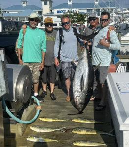 Captain Chris Watkowski and his crew on the Spring Mix II had a good day yesterday with some mahi and a very nice 138 pound bigeye tuna.