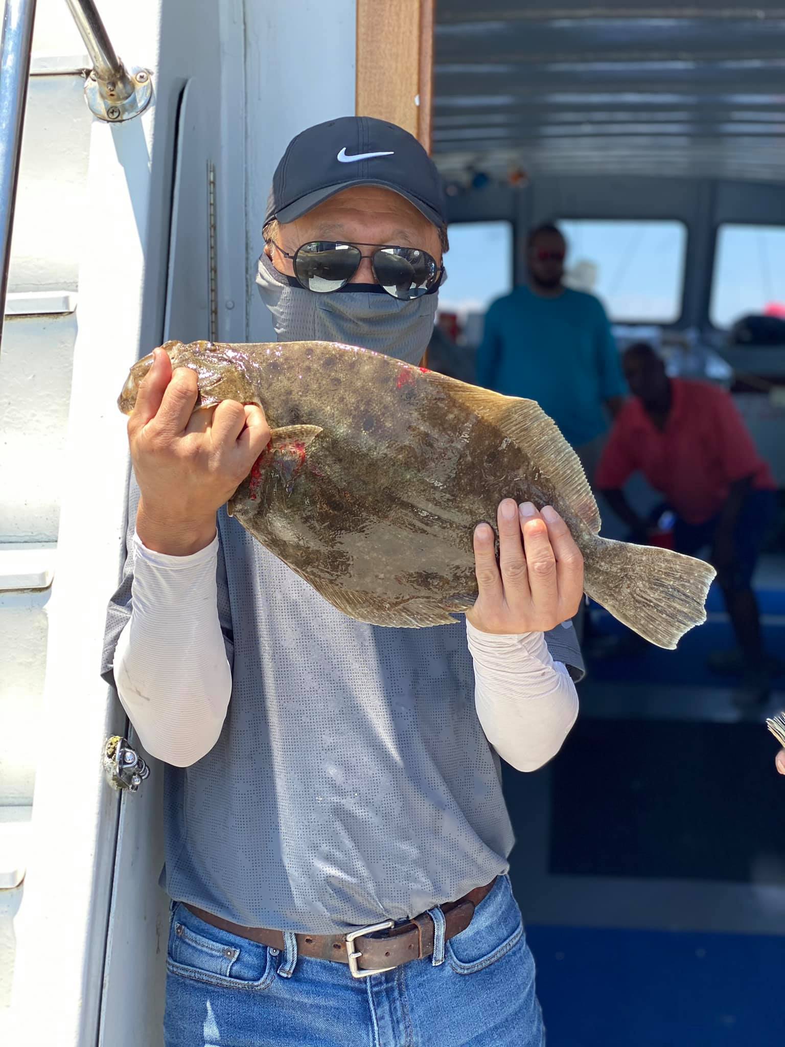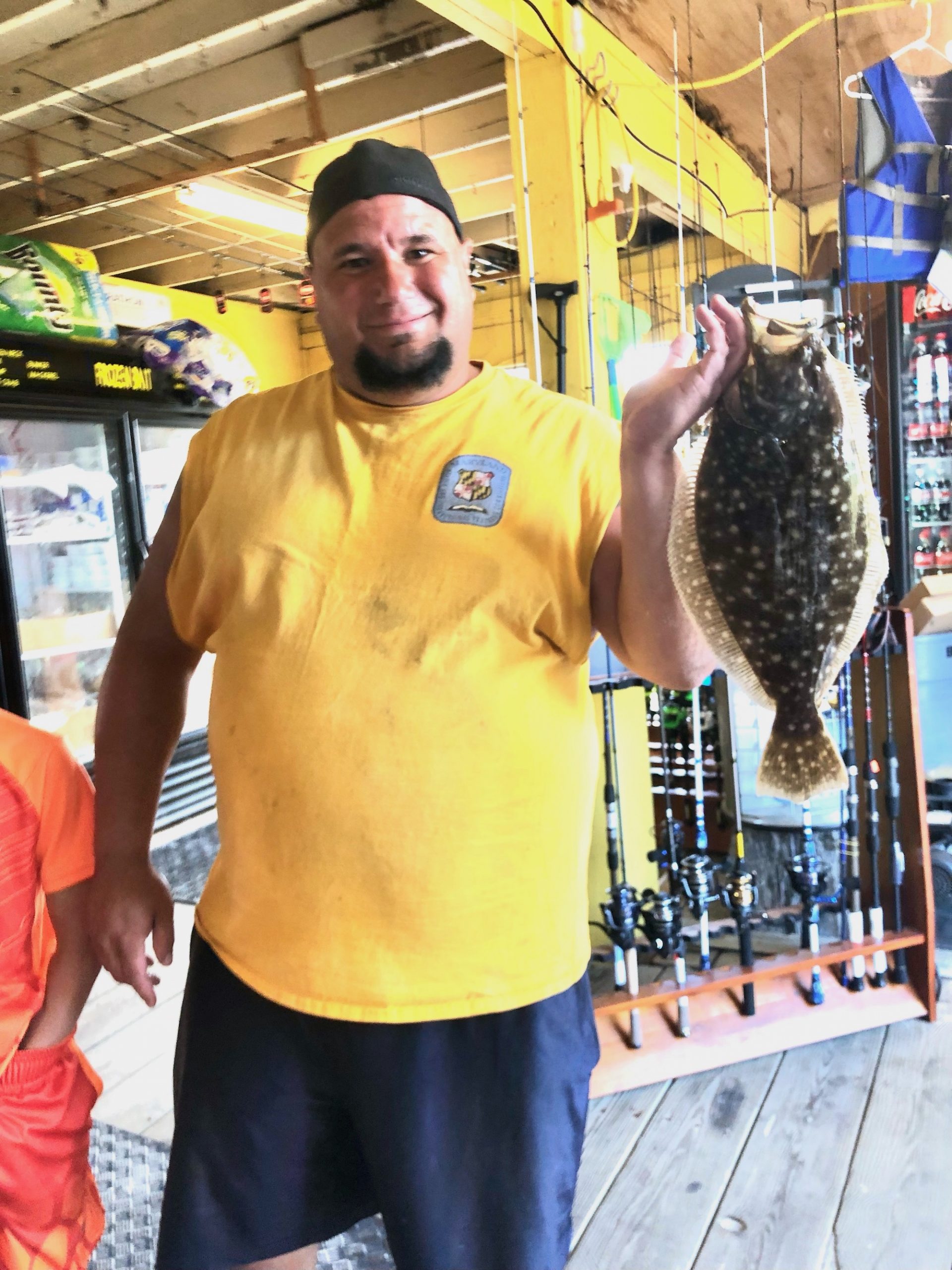 Travis from Waynesboro, PA landed this 18″ flounder on a live minnow bait casted from the Oceanic Pier in downtown Ocean City.