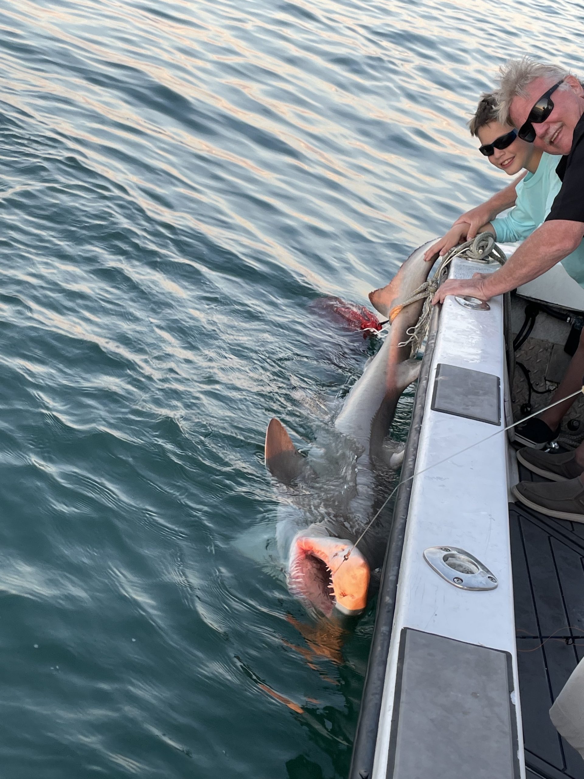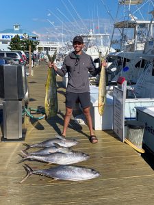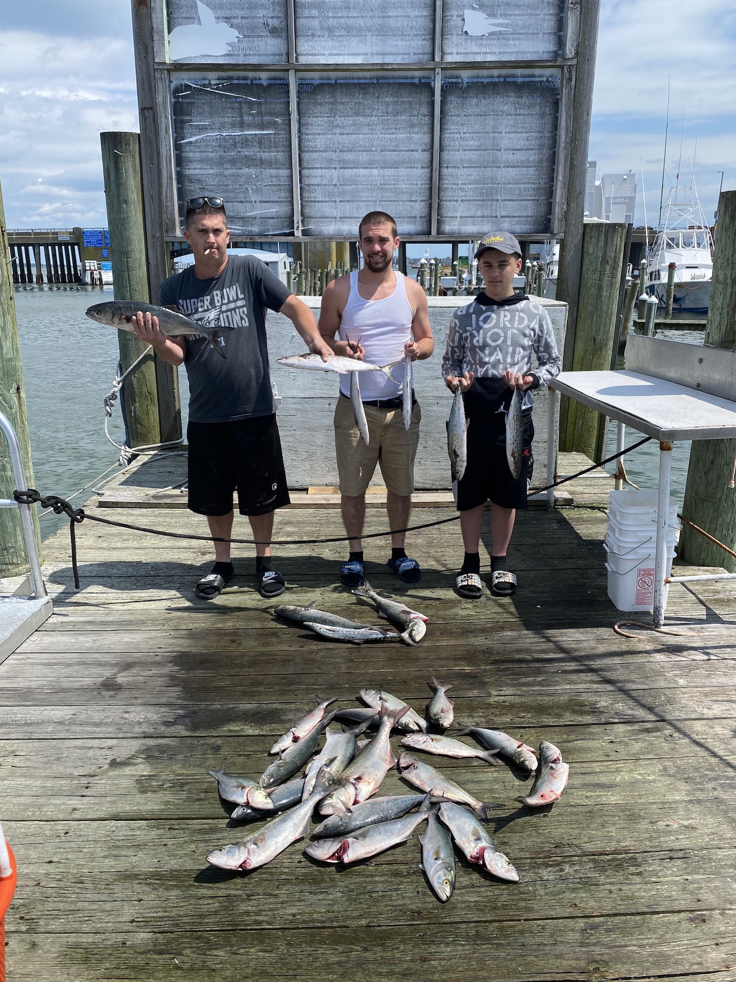 Captain Chase Eberle of Chasin’ Tides Charters had a nice evening of releasing sharks in the ocean and rockfish at the route 50 bridge last night and followed it up today by catching his anglers a boat limit of bluefish along with 8 Spanish Mackerel.