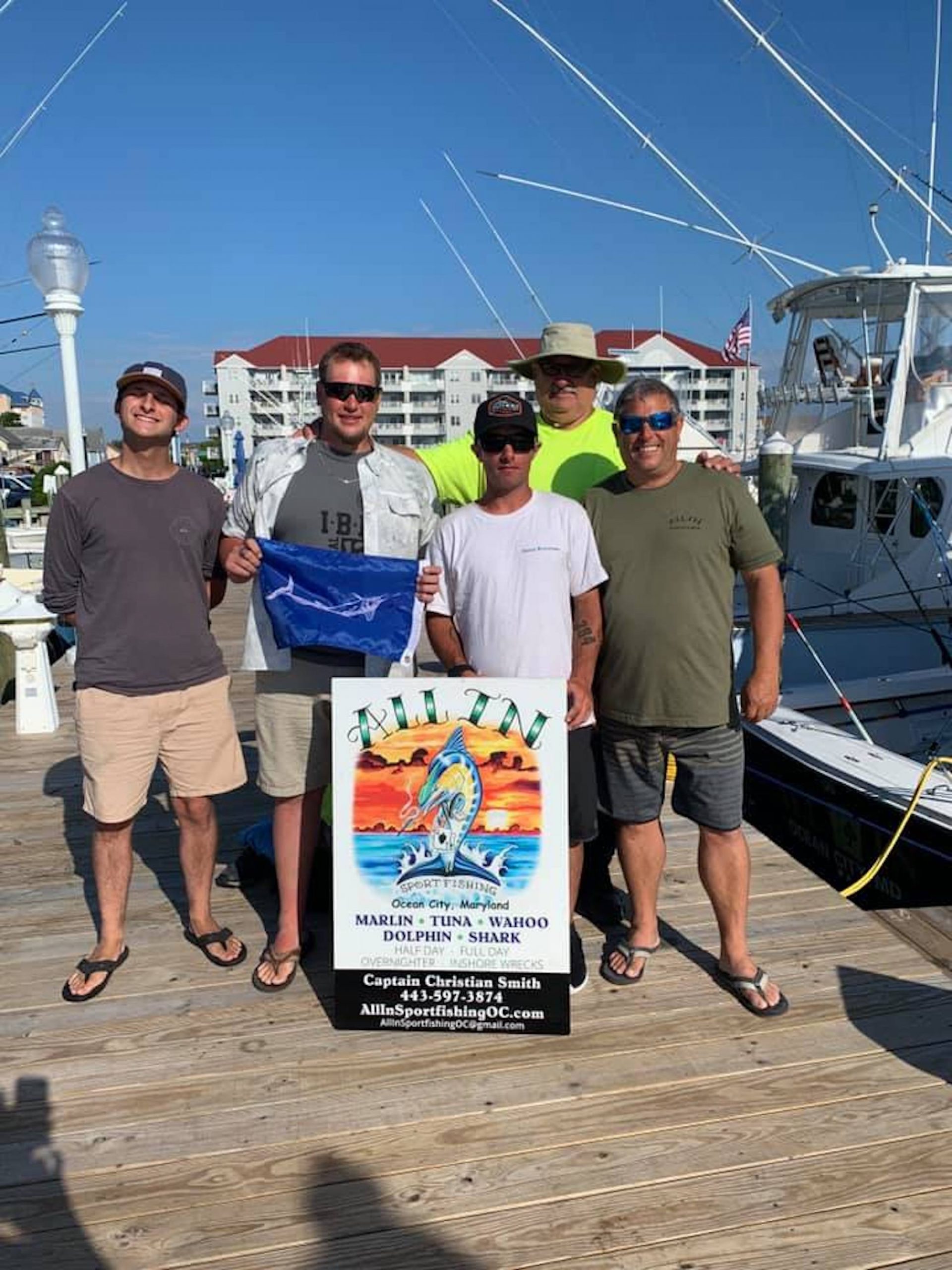 Captain Christian Smith of the All In put Nick Winters on his first white marlin ever which was also the first for the boat this summer.