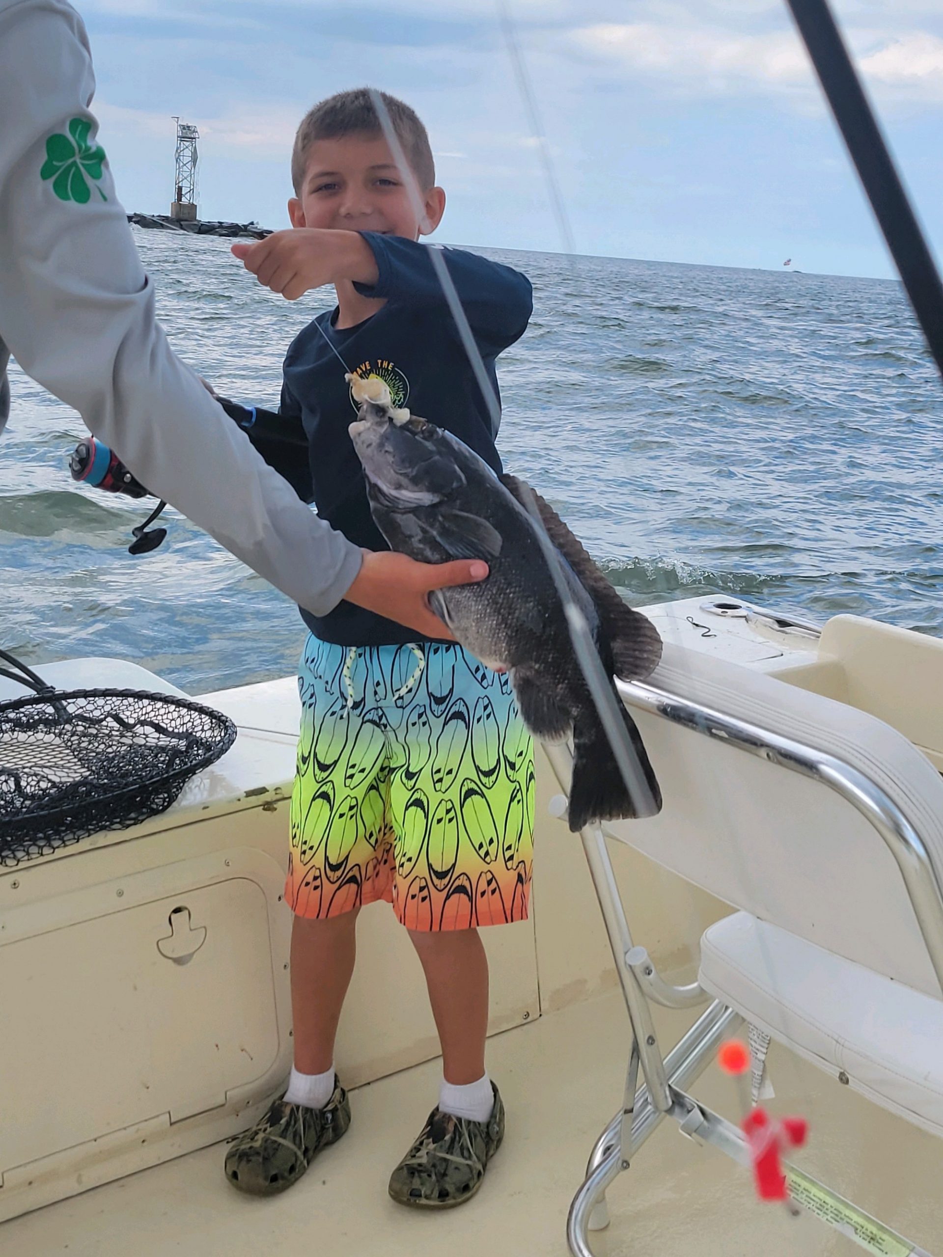 Captain Jason Mumford of Lucky Break had a couple of junior anglers on board today and they were on absolute fire! Dakota and Bentley Janney from Dillsburg, PA caught stripers, tautog and flounder on today’s trip.