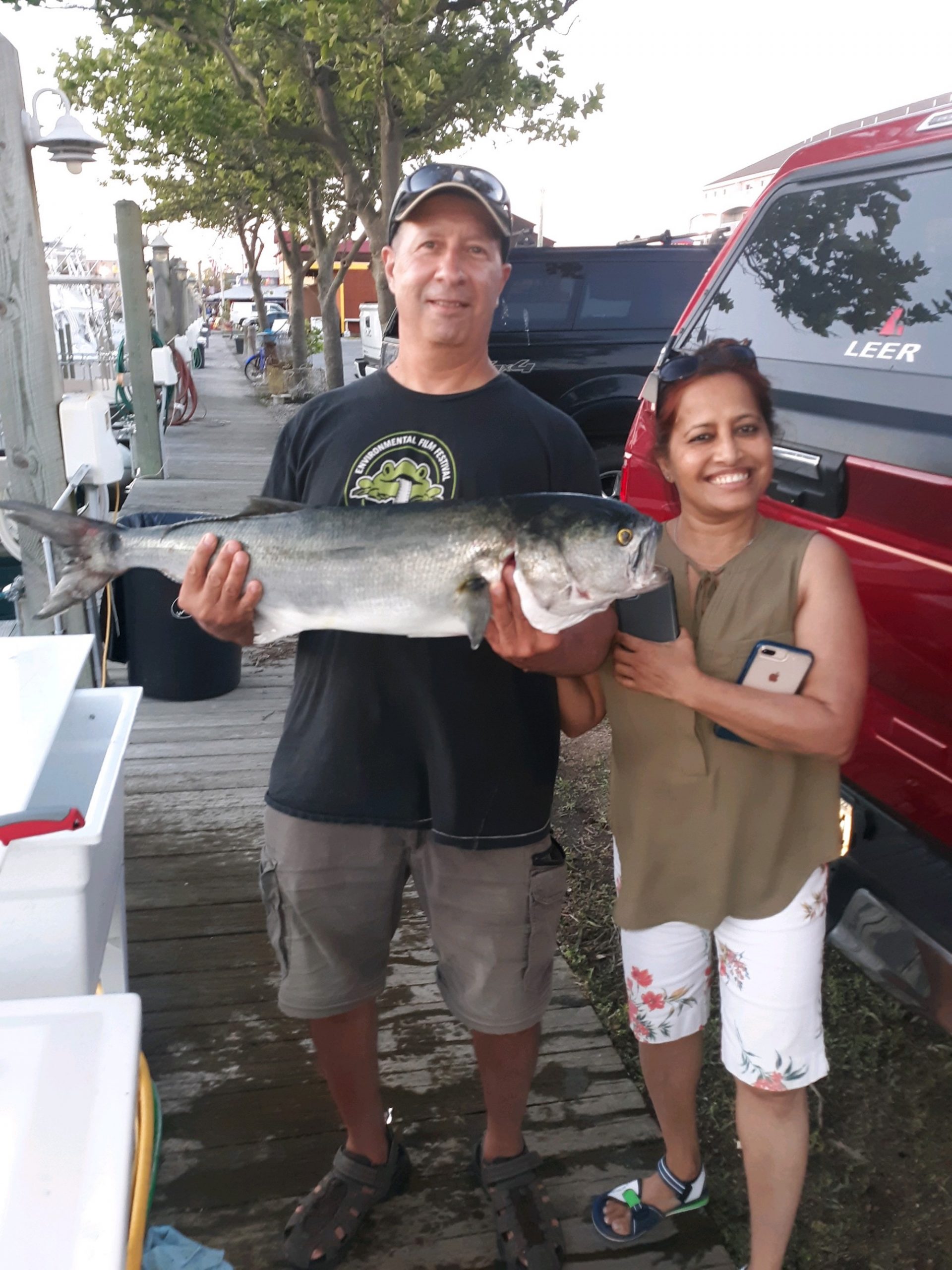 On yesterday’s evening trip Captain Wayne Blanks of the Bayside Guide Service put this angler on a big chopper bluefish from the route 50 bridge.