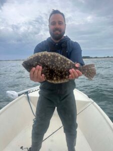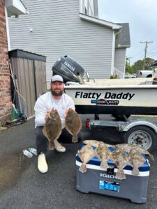 Kevin McNelis and his brother Sean took advantage of the window of calmness this morning and headed out to see if the flounder were still snapping outside the OC inlet. The brothers found that they were and caught over 30 flounder with a two man limit of 8 keepers in just three hours. Hopefully those fish stick around for a while!