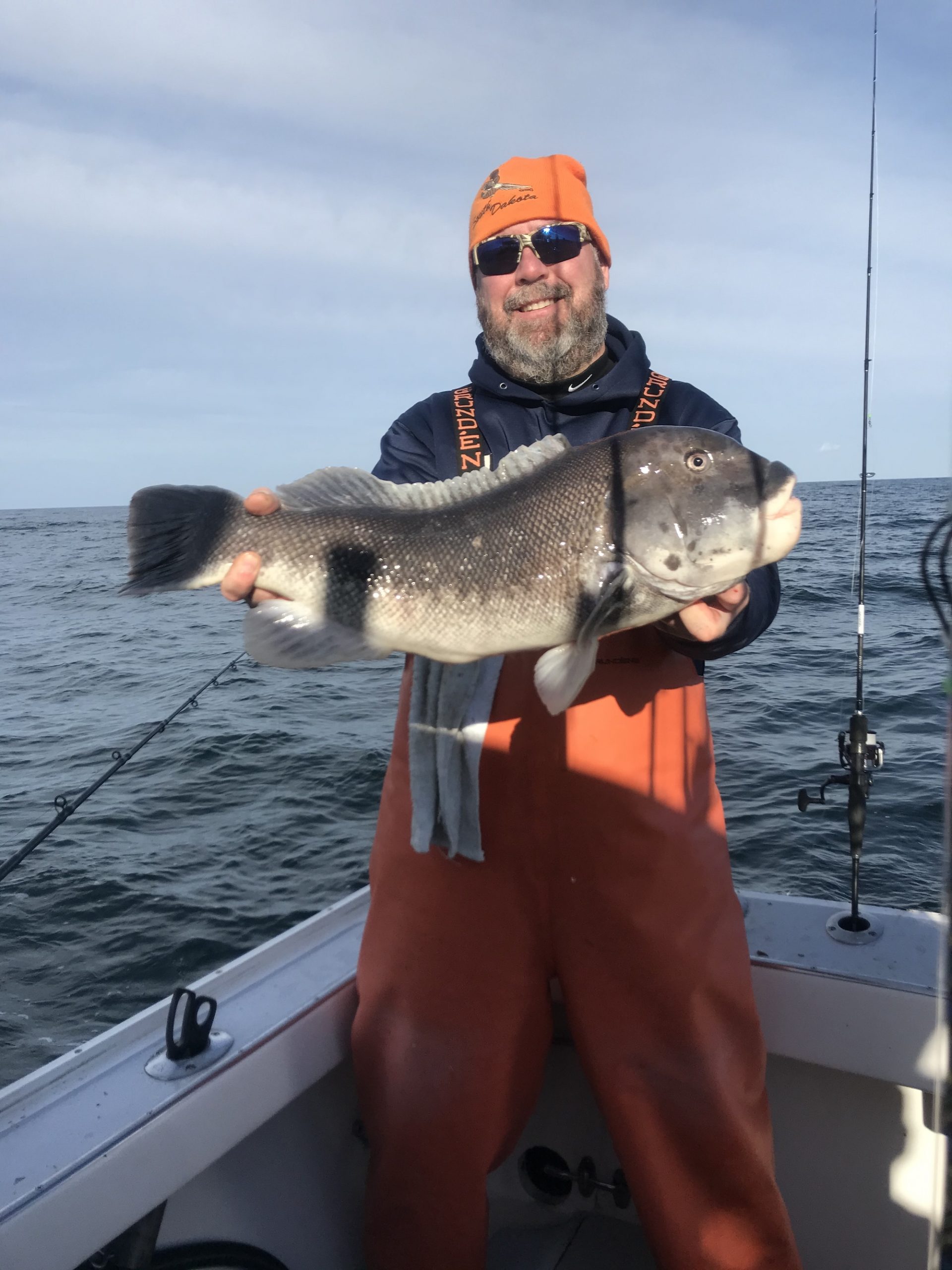 Captain Chase got in another good day today and enjoyed much calmer sea conditions and some bigger fish as well. Captain Chase reported 17 keeper tautog with the largest being this jumbo 29″, 19 pounder that was caught and released on a jig.  The group also lost another “monster” that came off before they could see it and fought harder than the 19 pounder.