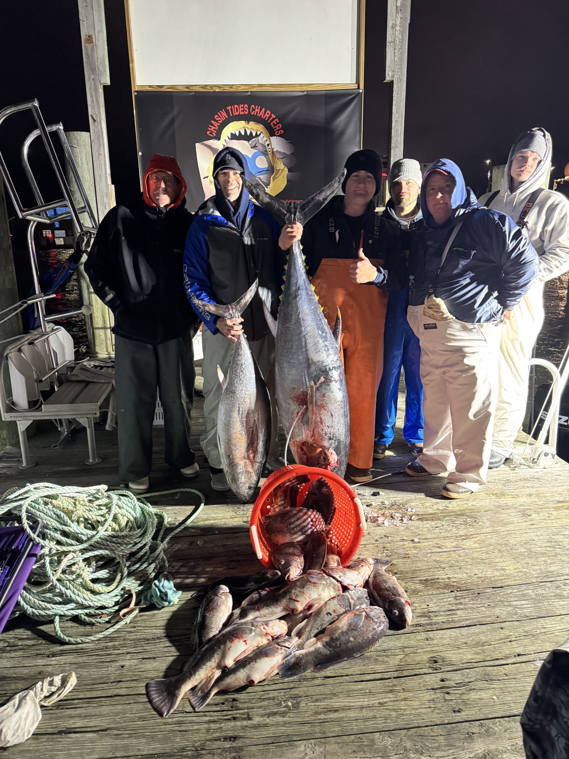 Captain Chase Eberle of Chasin’ Tides was out on the ocean today and his anglers got to take advantage of both of these fisheries. First it was a 46″ and a 66″ bluefin in the boat followed by a limit of nice tautog. Chasin’ Tides also released another “over” bluefin.