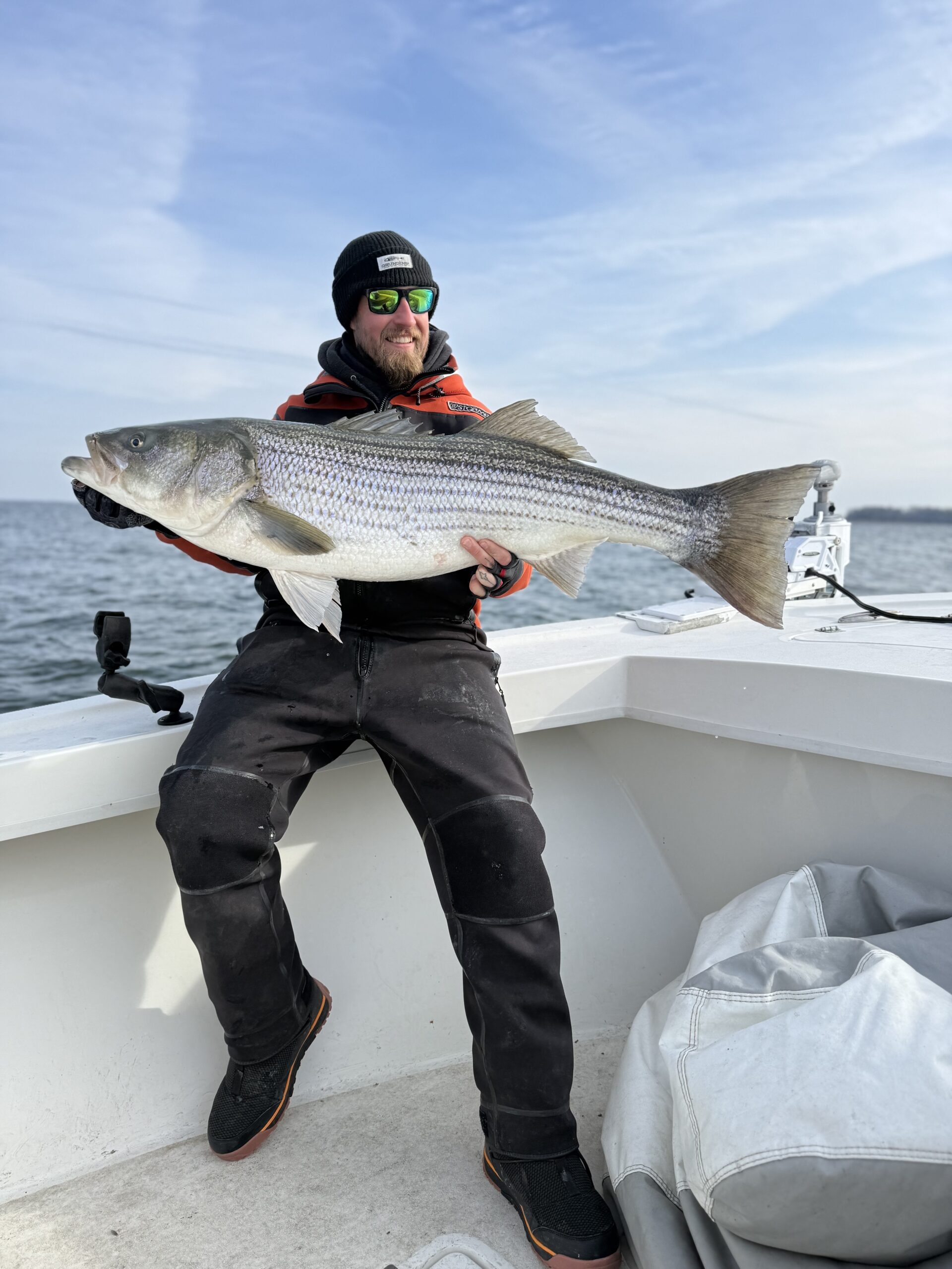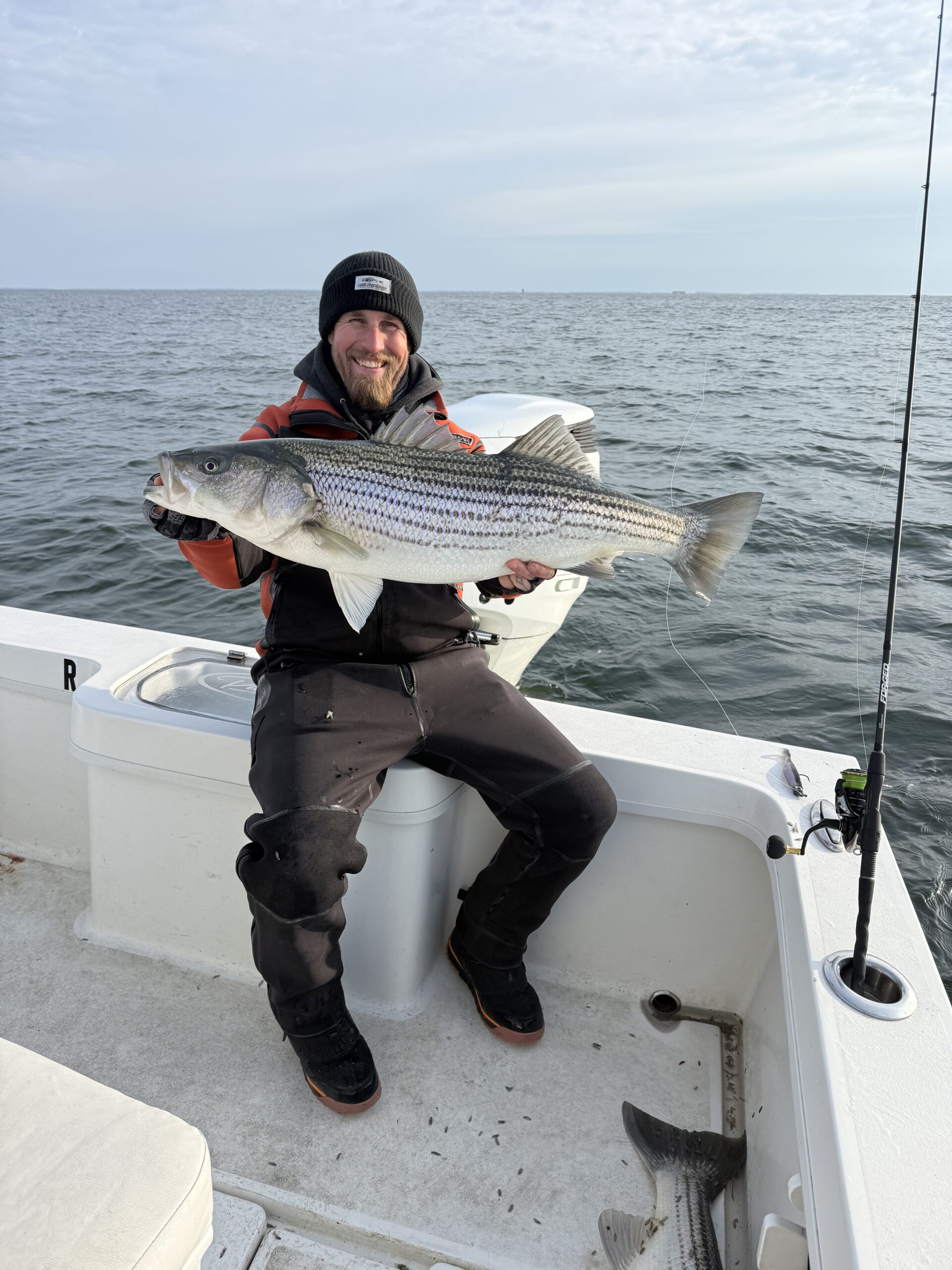Morgan Mericle fished the Chesapeake Bay the other day where he caught and released several migratory striped bass up to a very nice 47″ on lures.