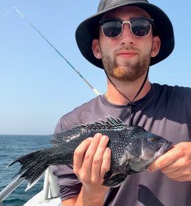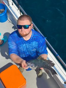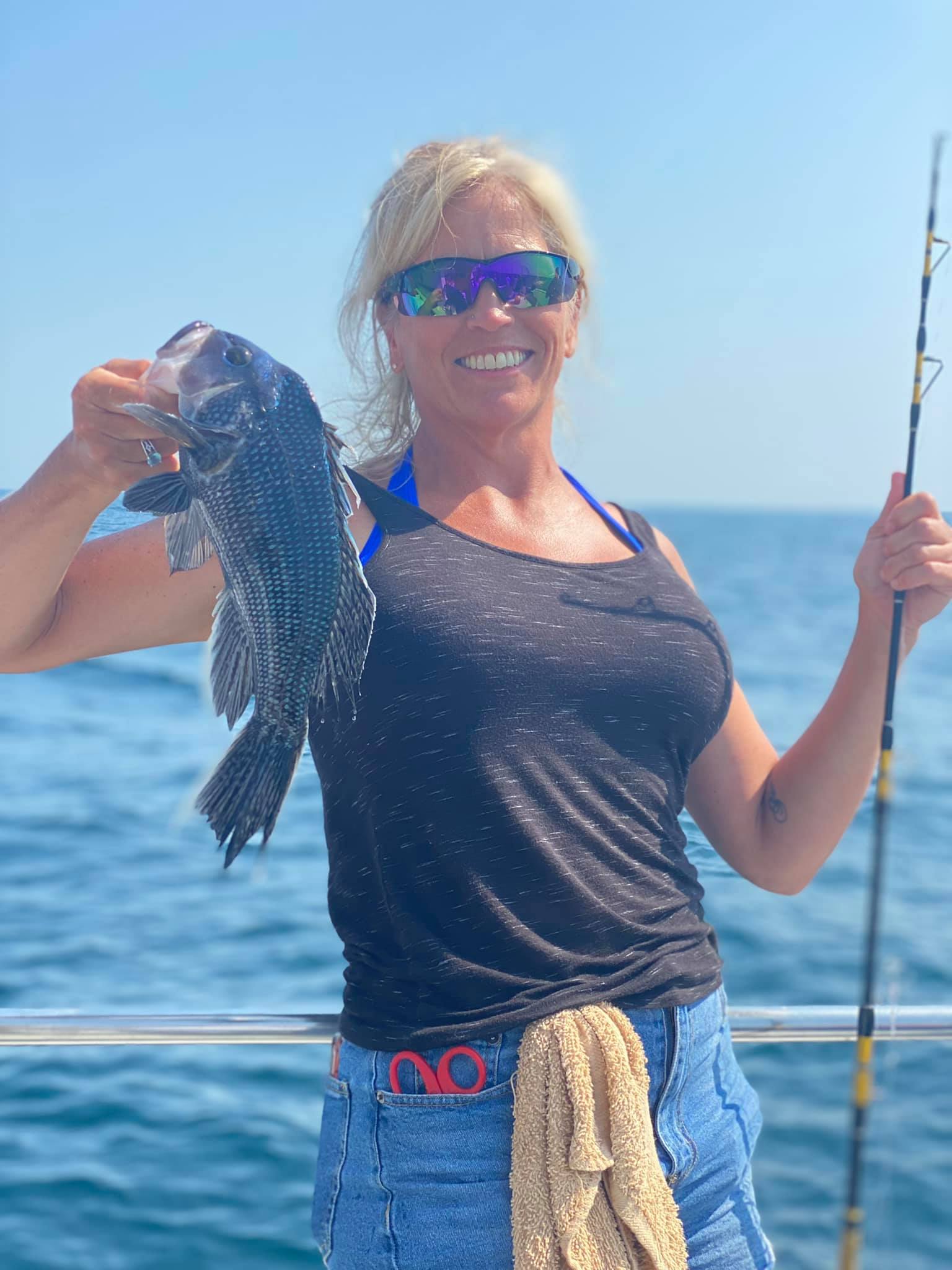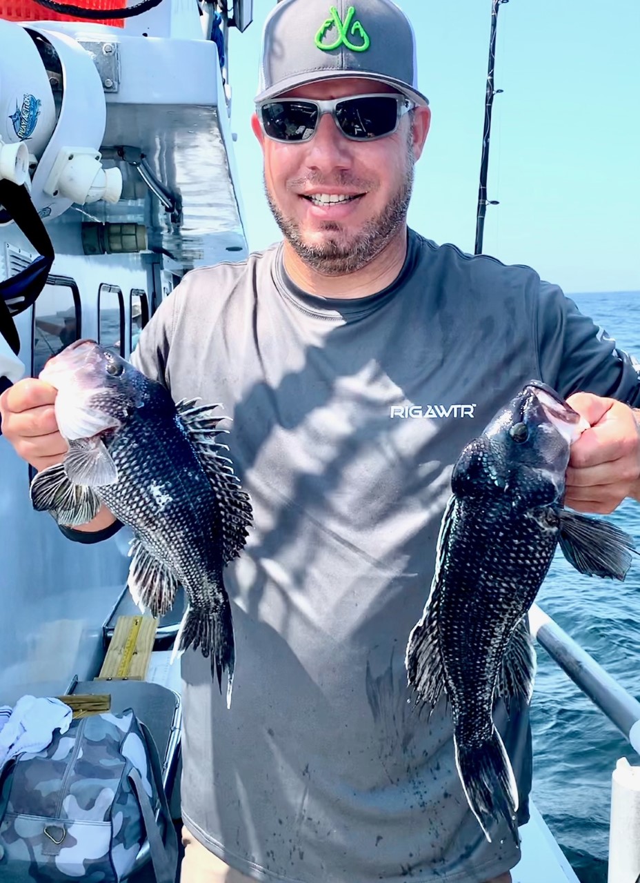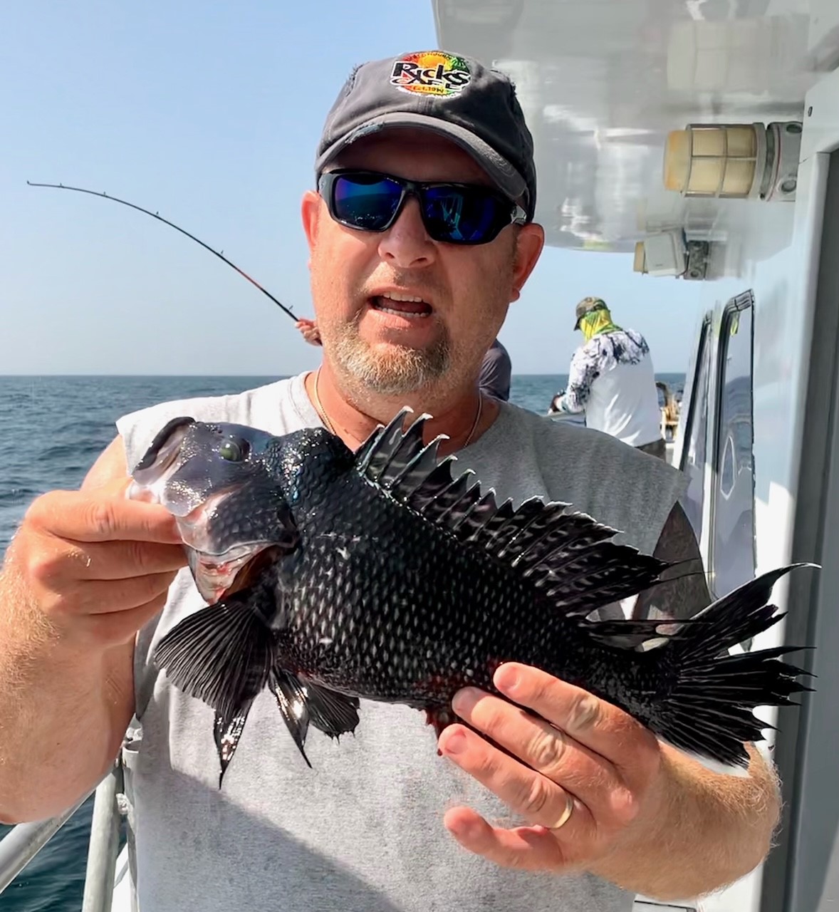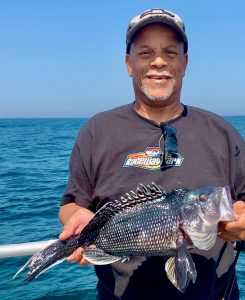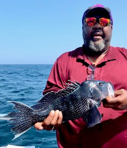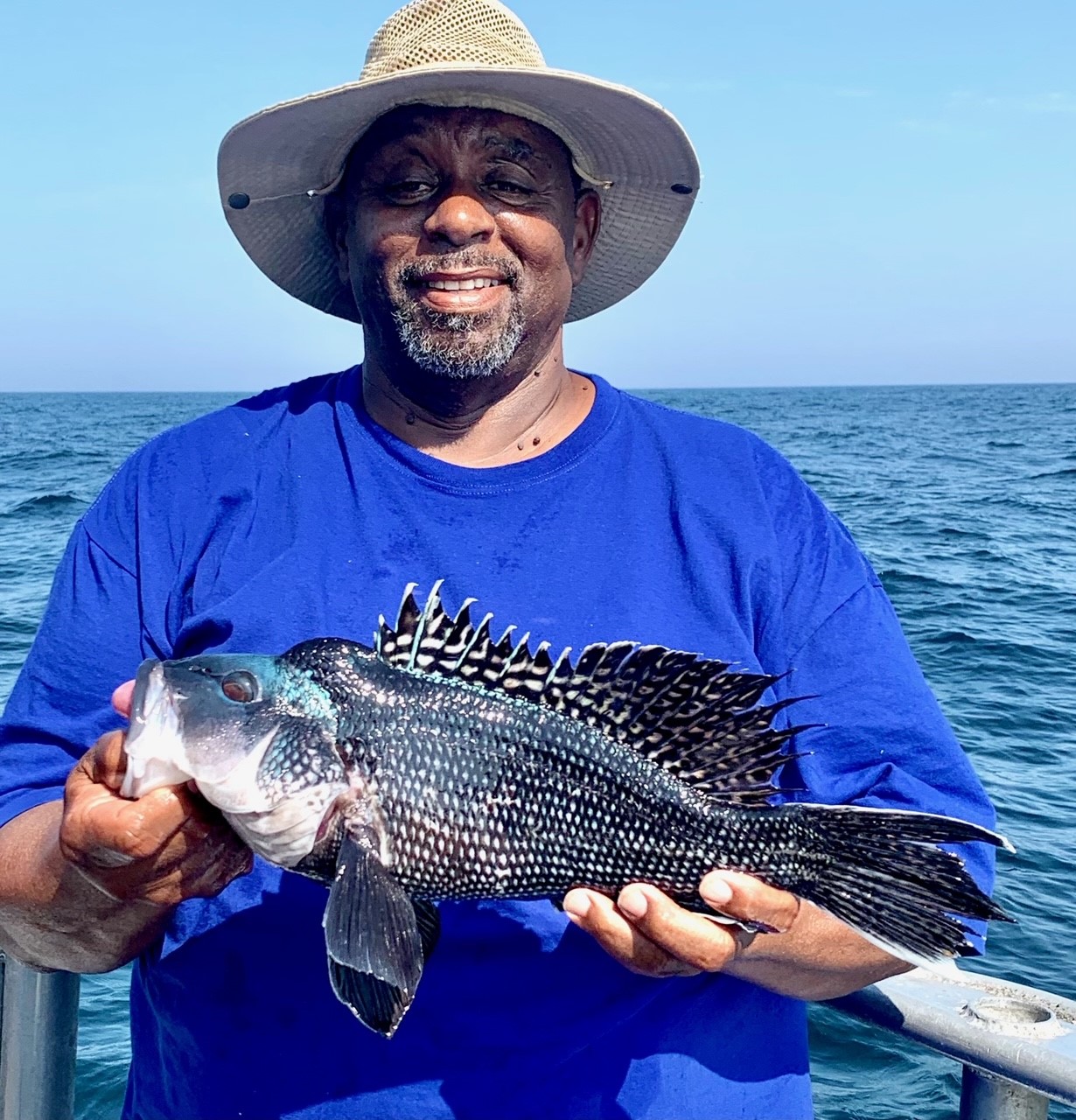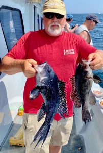Sea bass weren’t schooled as tightly today. I’ve no idea why. In fact, Angelo H of Woodbine MD had the day’s only limit – he pocketed everyone’s pool money too!