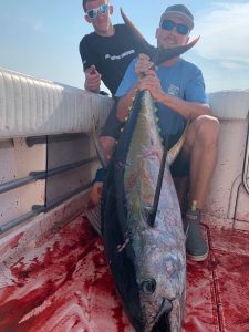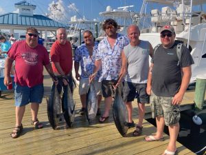 Tuna fishing in the offshore waters has been a little slow the past few days with a few fish here and there, but today it picked up a little for some boats. Captain Ron Callis and the crew of Turnin’ Fins had a good day today with six yellowfin tuna for the fish box.