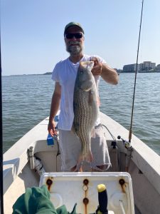 Big Bird Cropper and Shawn Flaherty dredged the route 50 bridge at the last of the outgoing tide and found this 29″ keeper rockfish.
