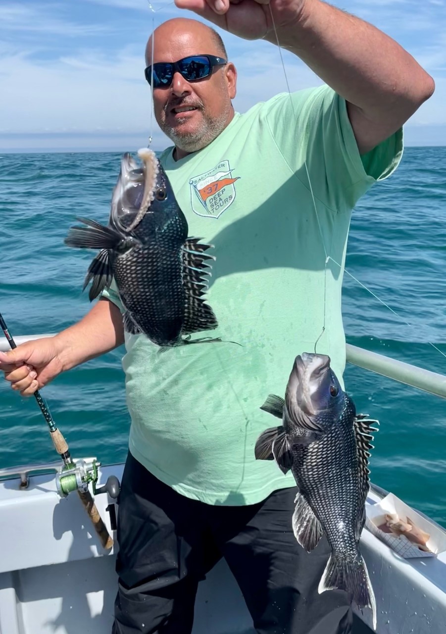 Captain Monty Hawkins of the Morning Star called it early today thanks to the weather, but he was still able to do a little damage to the sea bass population.