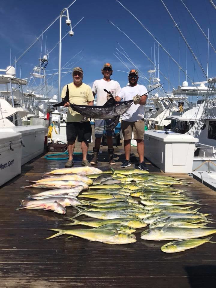 Offshore fishing is definitely slowing down, but it is far from over with. Captain Joey Drosey on board Rhonda’s Osprey proved that on an overnight trip las night that produced a swordfish, a dozen beautiful golden tilefish and a box full of over 40 mahi.