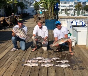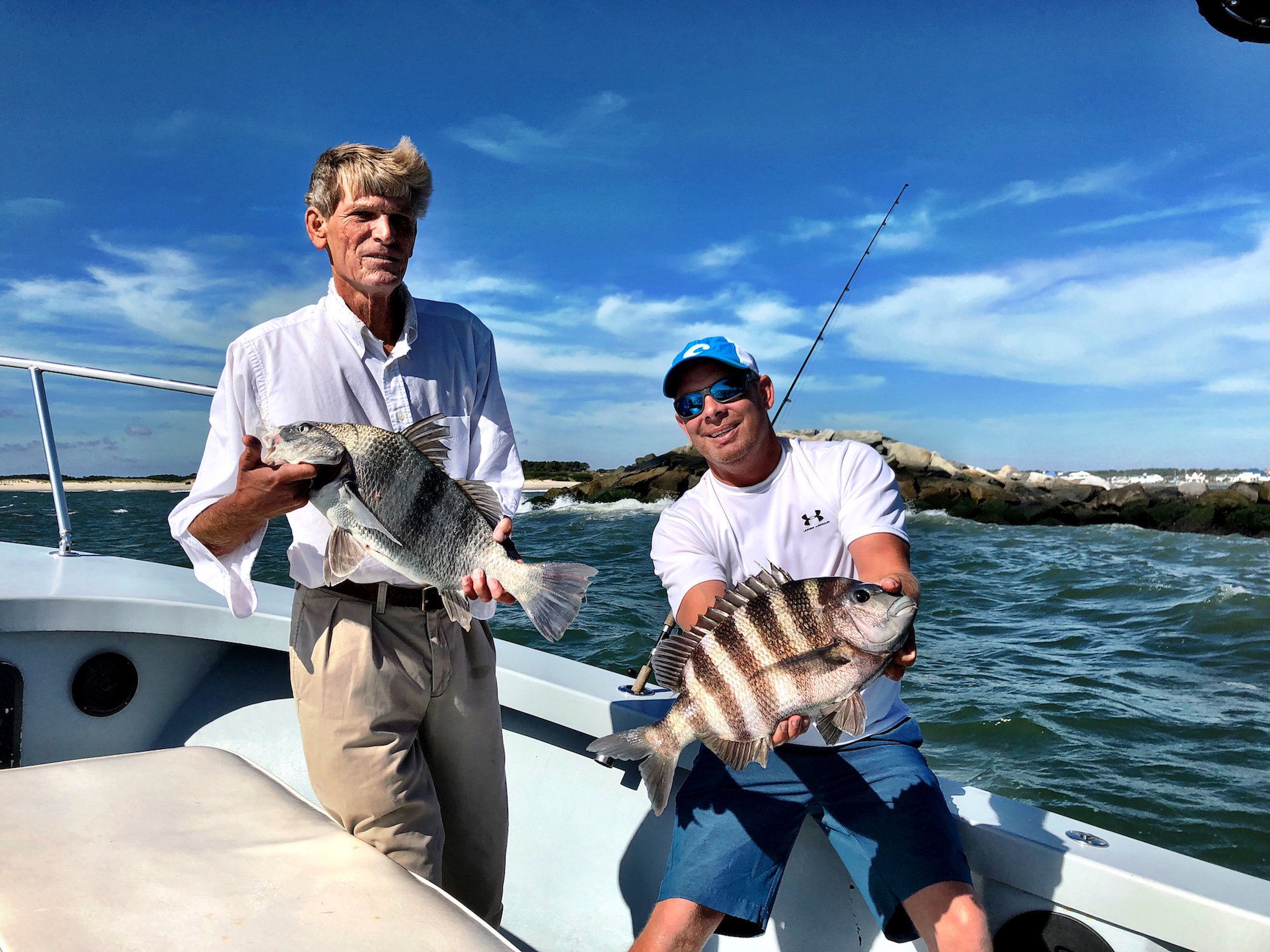 Like I mentioned there are a ton of species being caught in Ocean City right now and Captain John Prather of Ocean City Guide Service found a couple of them today. Captain John put E.R. Bounds of Sunset Marina and Dan Harrison on keeper versions of sheepshead, black drum and red drum while fishing the inlet today during an awesome day of fishing.