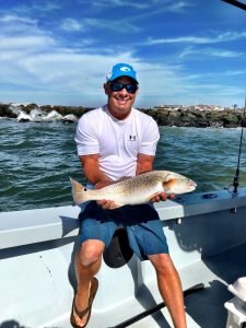 I tried my luck at the south jetty yesterday with some live sand fleas on the prowl for some sheepshead. Although I didn’t catch any of my target species I did luck into two red drum of 25″ and 26″….yes, you are only allowed one per person….one for me and one for my cameraman Dave Messick.