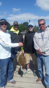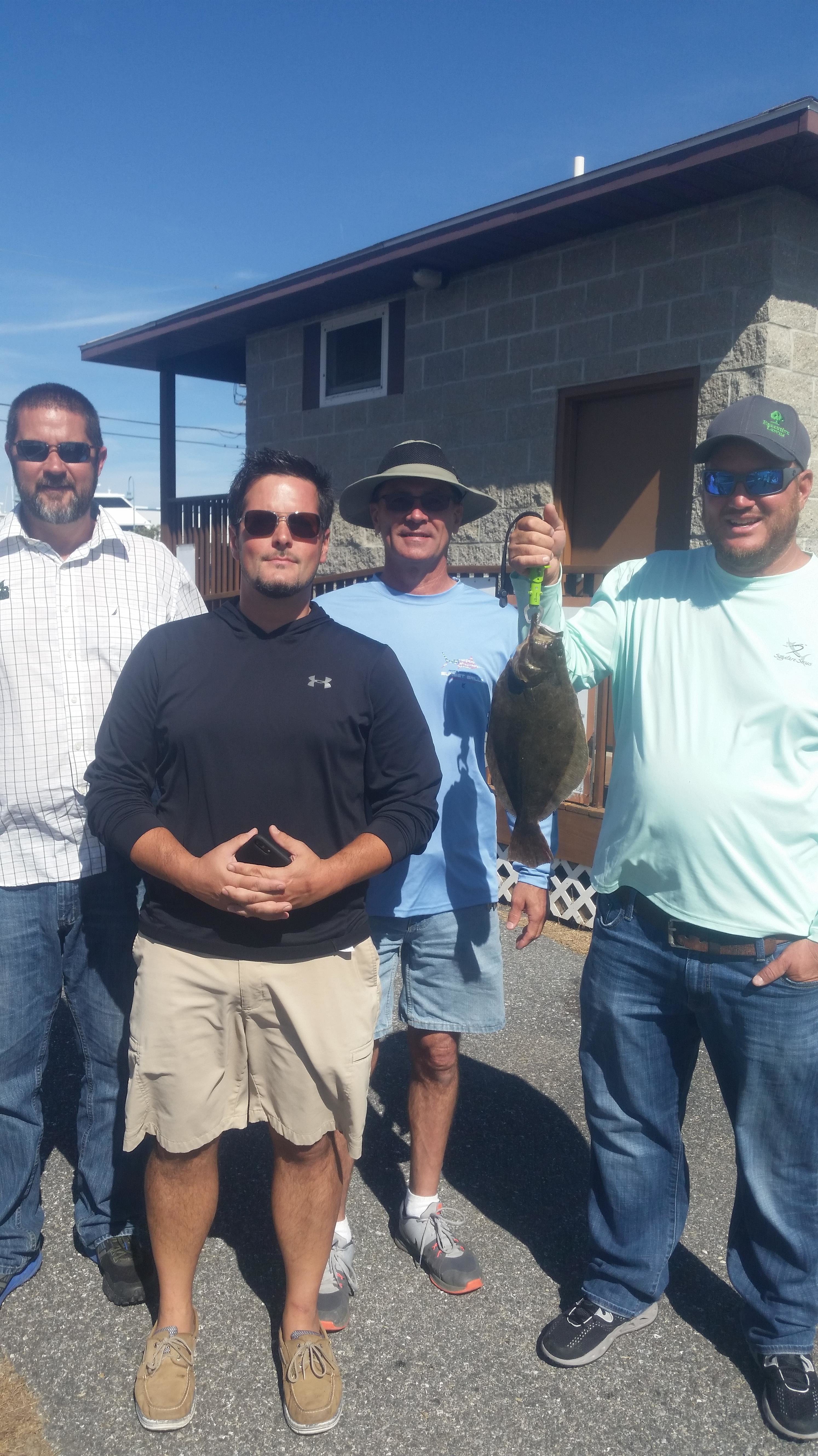 Captain Brad McCabe of Bay Time Charters has had a good couple of days in the bay recently. Captain Brad put the crew from Atlantic Irrigation….Kenny Burnley, Wayne Upto, Brian Swain, and Dale Carey on 35 plus short flounder and then Dale managed to boat this 18 in keeper. Captain Brad put Atlantic Irrigation group 2… Jay Huss, Tony Italia, Jerry Dougherty, and Dale Carey on a smorgasbord of fish including flonder, blues, specs and a few tog until they found 18 1/2 inch flonder for dinner.