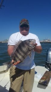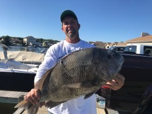 Bryan Keith caught this big 12 pound 6 ounce sheepshead while fishing outside the south jetty with Matt Shoup of Fenwick Tackle.