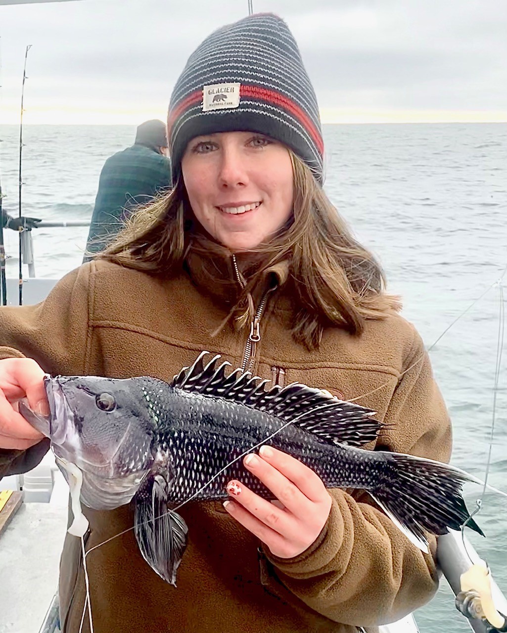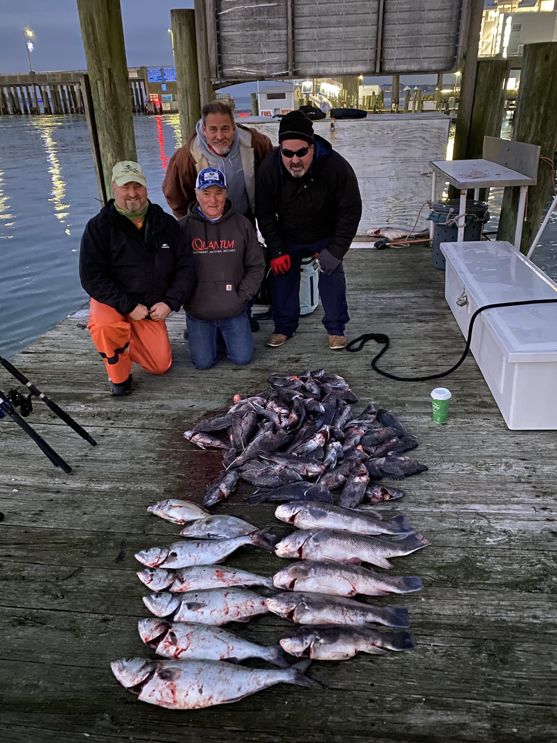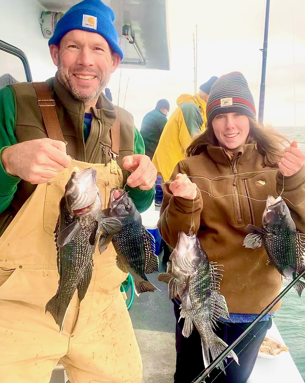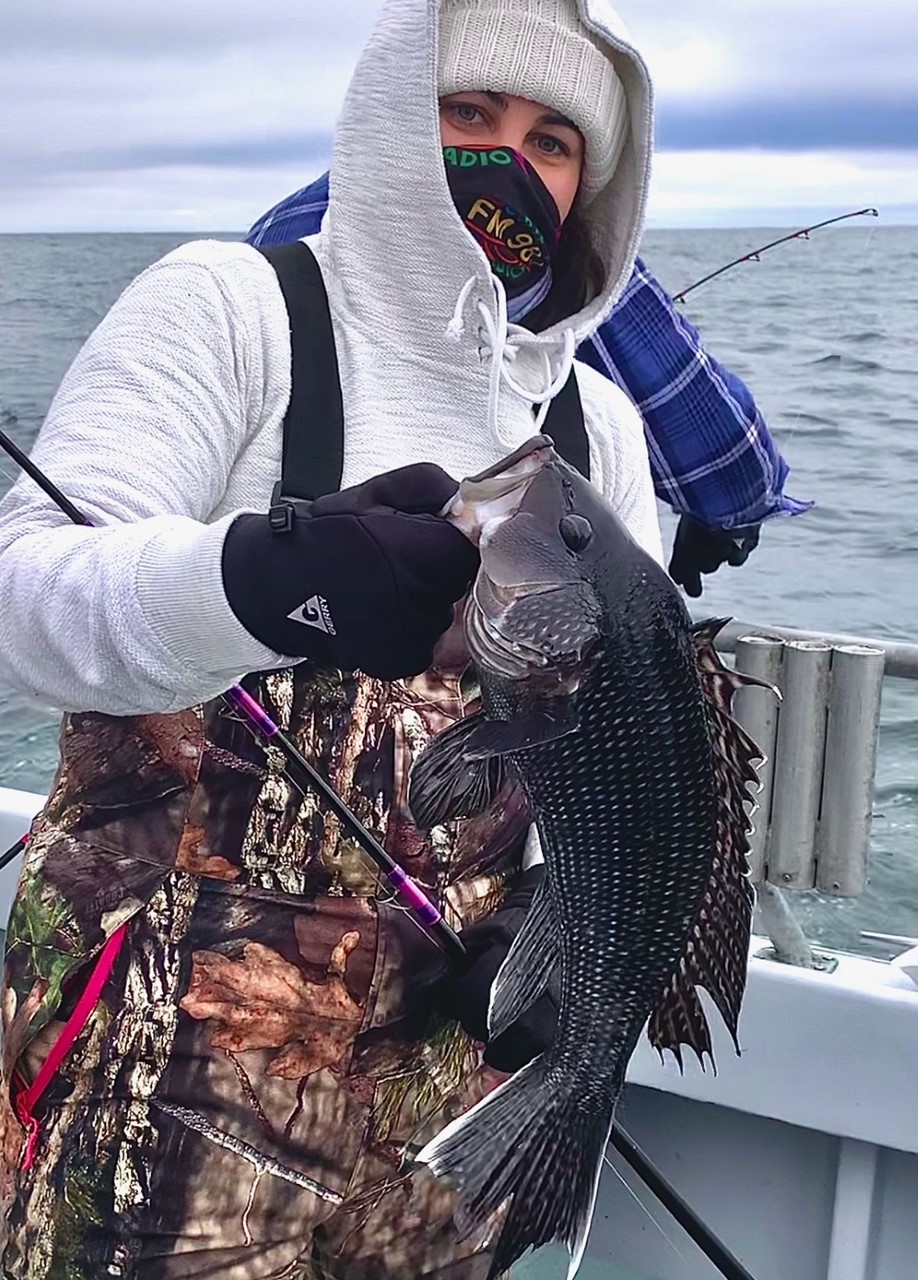 Captain Chase Eberle of Chasin’ Tides Charters had some good fishing today as well that ended with a limit of sea bass for his crew along with some keeper bluefish and tautog.