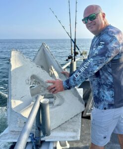 A deckhand with me 30+ years ago; Joe deployed 4 pyramids at Capt. Bob’s Reef. There was a charter boat targeting fluke there this morning too. Good sign of success. Hope he caught em. I’ll be sure to tag him when it comes time for our raffle/auction reef building fundraising.