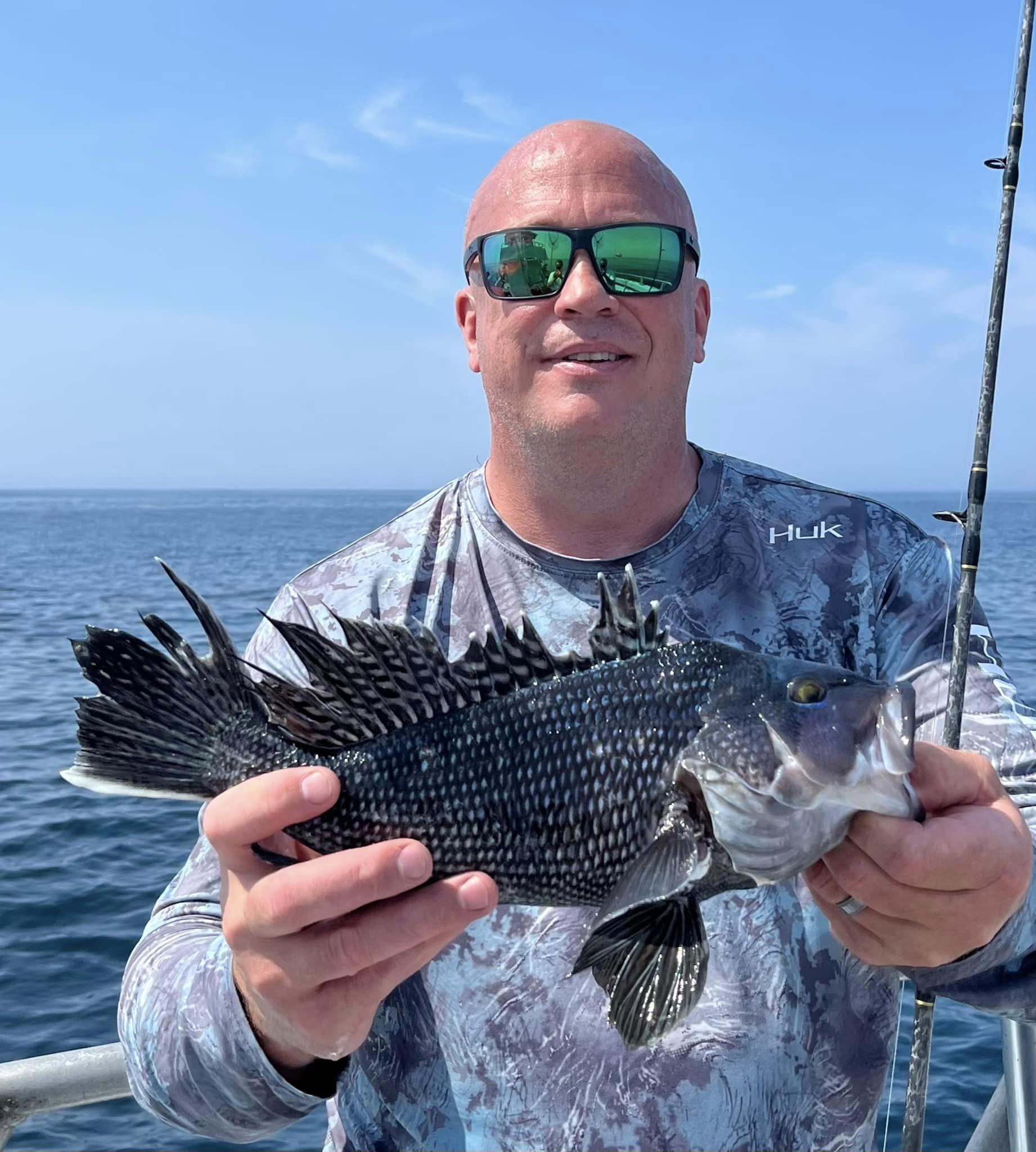 Captain Monty Hawkins had a good day on the rip for his folks putting them on some nice sea bass.