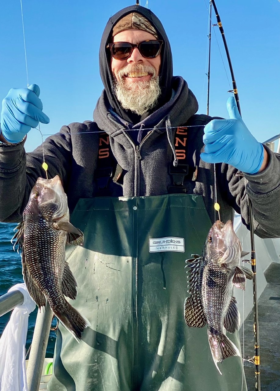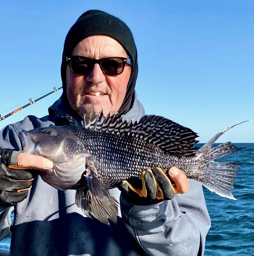 Captain Monty Hawkins of the Morning Star was out on the rip today and enjoyed sea bass boat limit #11 in a row