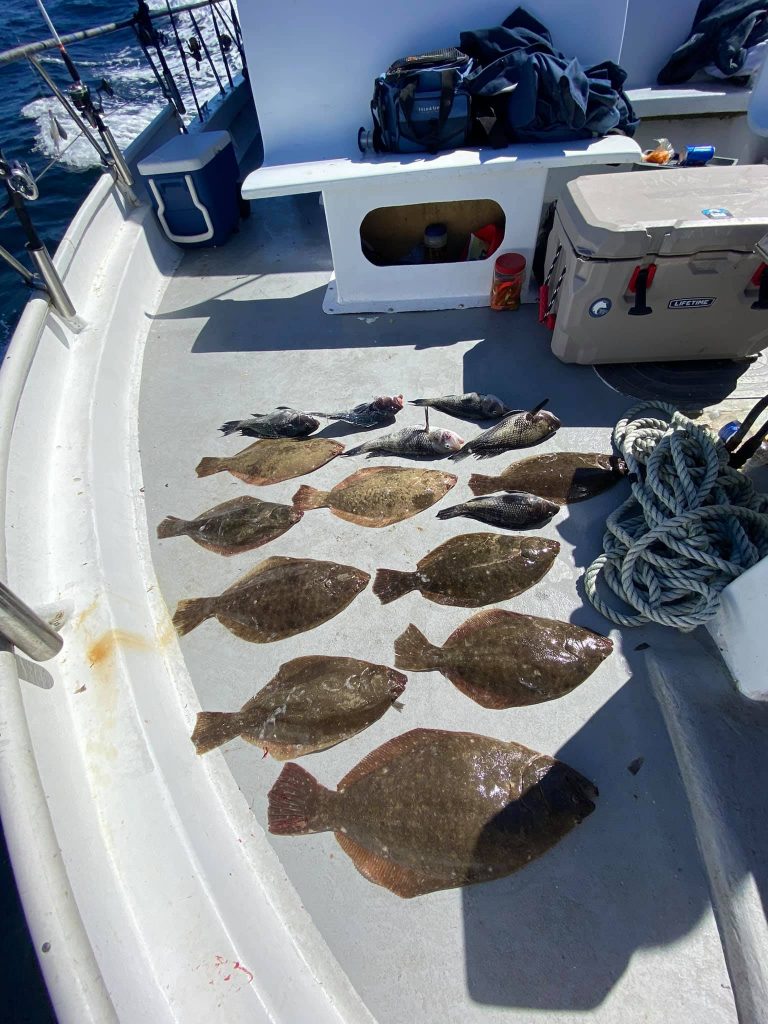 Captain Shannon Pickens had a nice day on the rip today with some big fish to show for it. These guys had flounder up to 24″ and some big sea bass of 4.8 and 5.5 pounds.