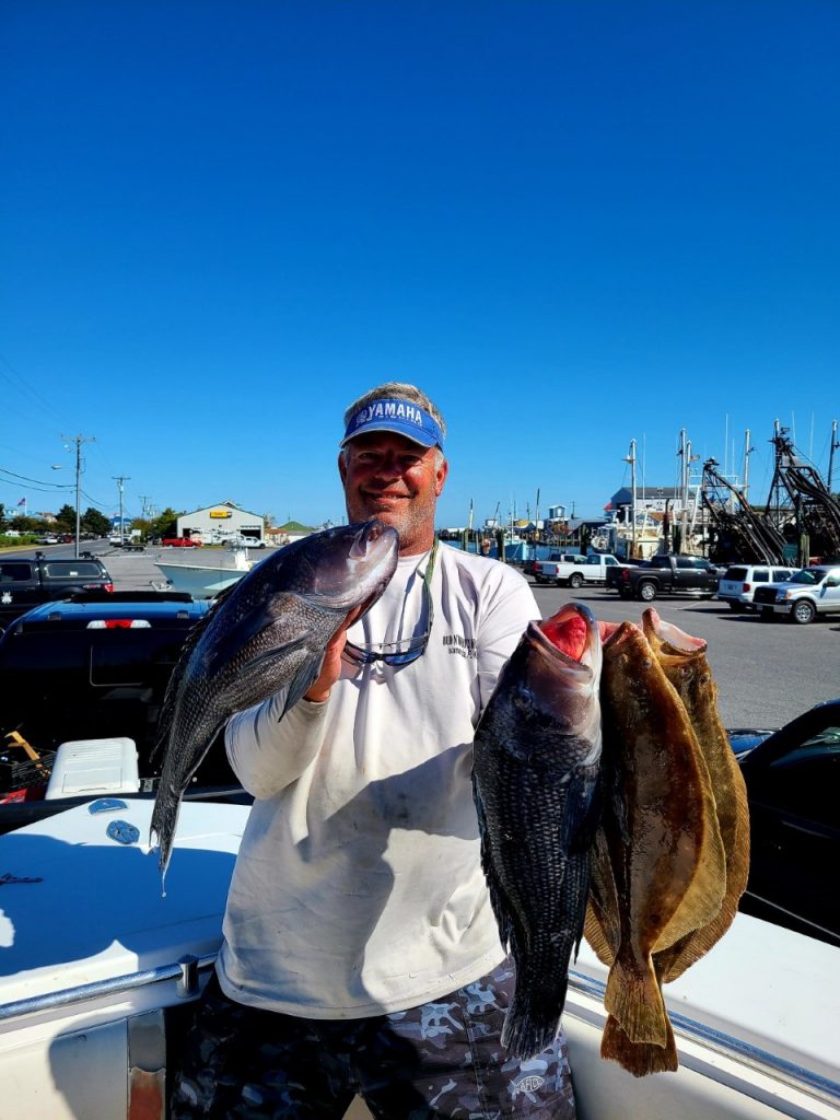 Captain John Prather of Ocean City Guide Service found some good fishing for his clients from West Virginia today putting them on keeper flounder and some sheepshead.