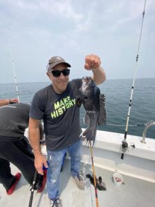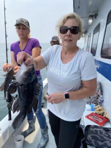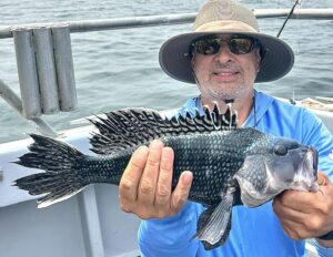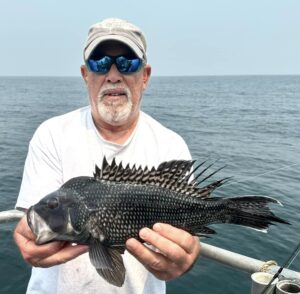 Captain Chris Mizurak of the Angler reported a nice day of fishing and beautiful weather until the ride home.  Angler had some nice sea bass and a couple of flounder on board today.