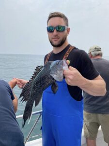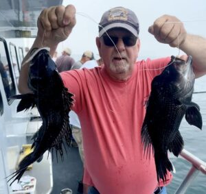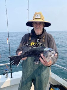 Captain Monty Hawkins of the Morning Star had to go into overtime today, but it was worth it as he saw some dandy sea bass come aboard.