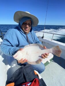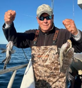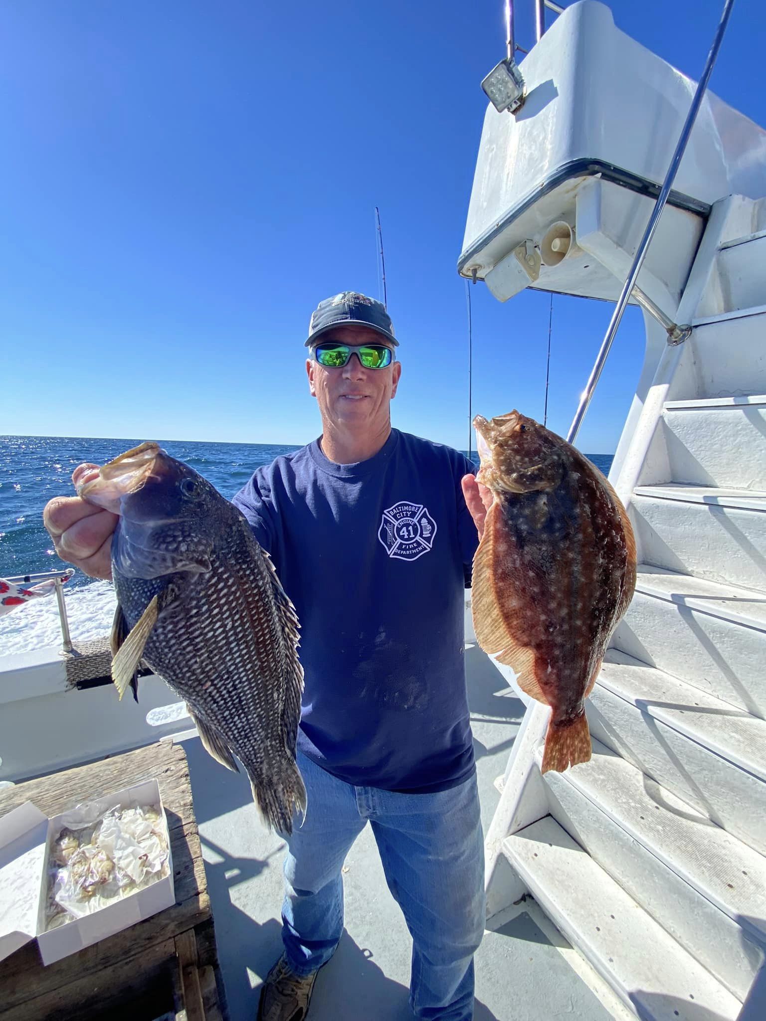 Captain Chris Mizurak of the Angler reported good fishing on today’s trip with sea bass up to 3 3/4 pounds and flounder to over 4 pounds.