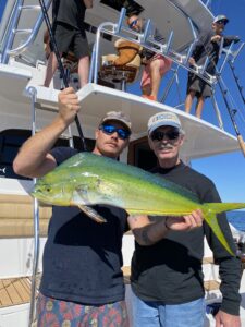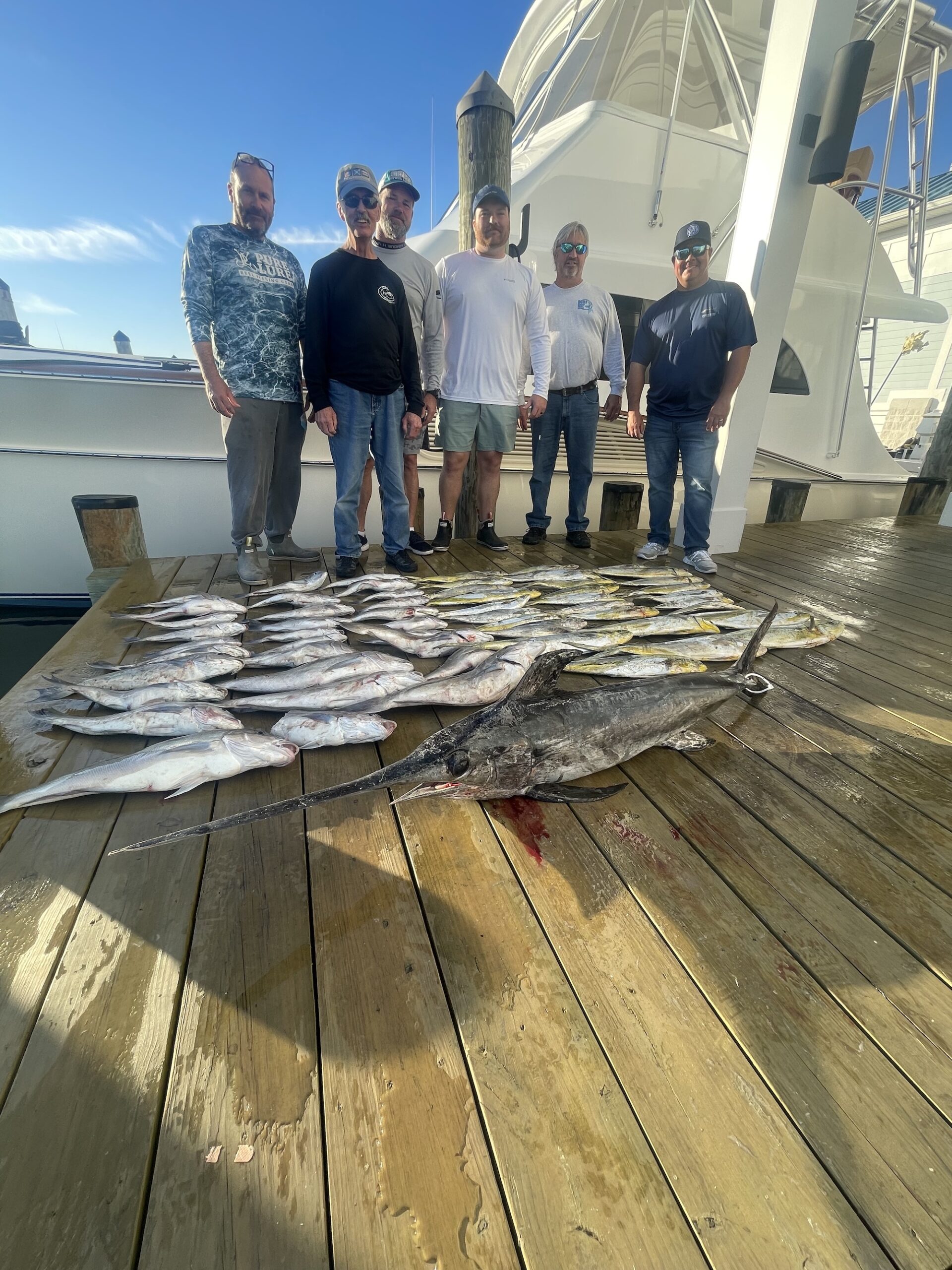 For the second day in a row I got to head offshore to shoot an episode of Hooked on OC and it was an awesome day on the water. Today we headed out with Captain Willie Zimmerman and the crew of RoShamBo with Bryan Mindte and his crew from Sunset Provisions. We headed to the Washington Canyon where we started with a limit of blueline tilefish in just about an hour and then we did a little sword fishing and got lucky enough to find a fish that was just over the 47″ LJFT minimum size. We found a couple of floats that held a bunch of nice mahi and we bailed 30 or so of those into the fishbox for a great day on the water. It should make for a great new episode of Hooked on OC.