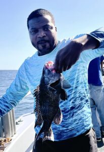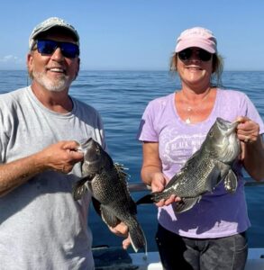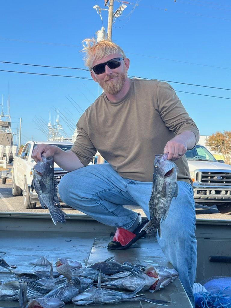Bryan Reyolds hit the Bass Grounds in his aluminum skiff today and found a limit of sea bass, some croaker and some kingfish.