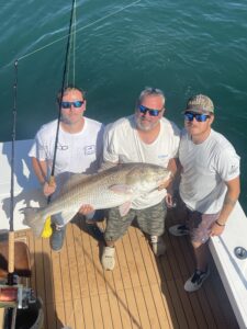 Captain Willie Zimmerman and his crew on RoShamBo was jigging at the African Queen site when this big red drum ate and then was safely released.