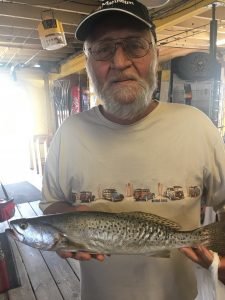 Dale from Fredericksburg, VA had this 18.5″ speckled trout on a live minnow from the pier.