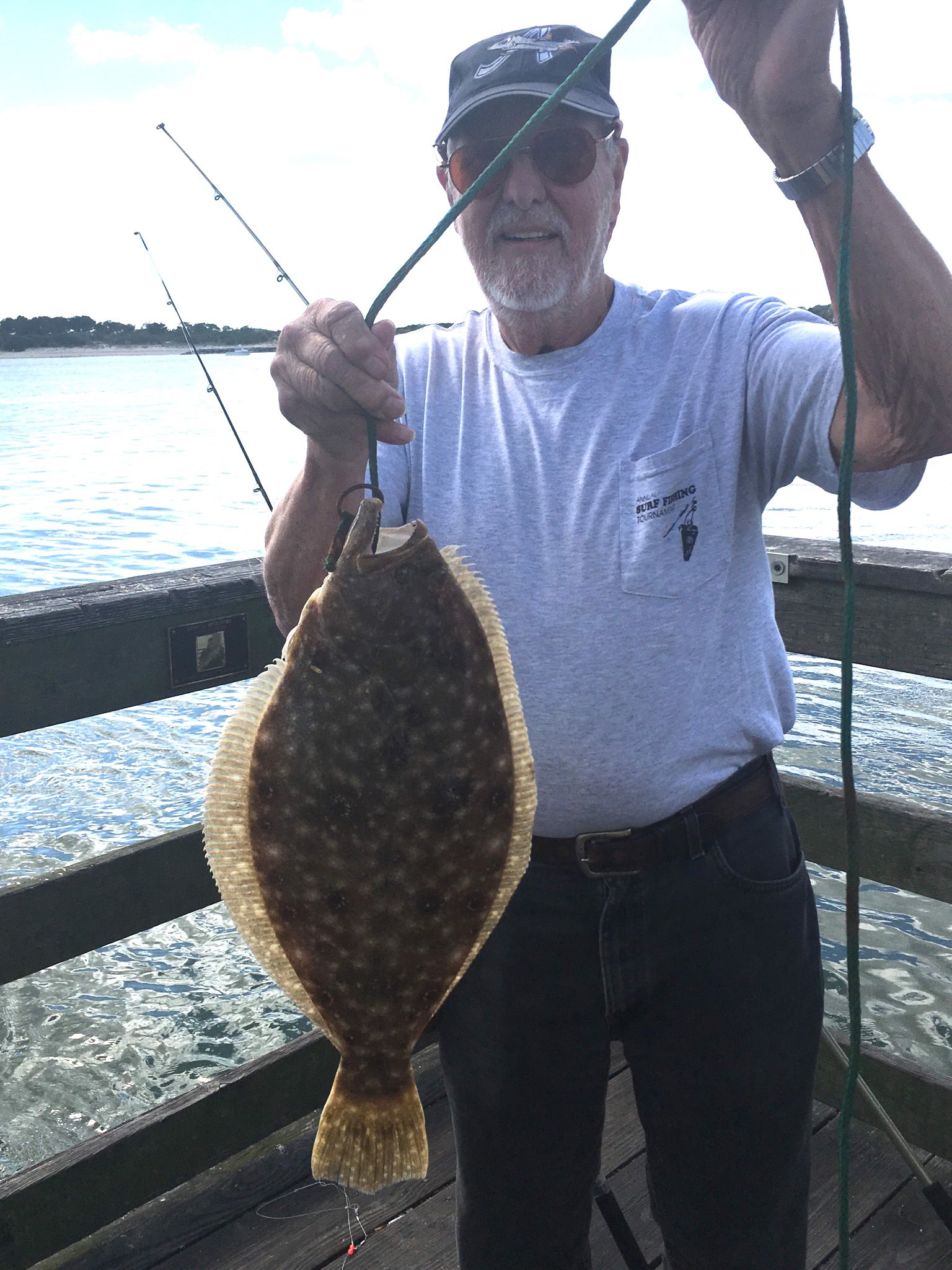 Fishing down at the Oceanic Pier in downtown Ocean City was good today. Bear sent me a couple of pics of anglers that had good luck. Chuck from Mt Airy, MD caught a 20″ keeper on a shiner from the pier.