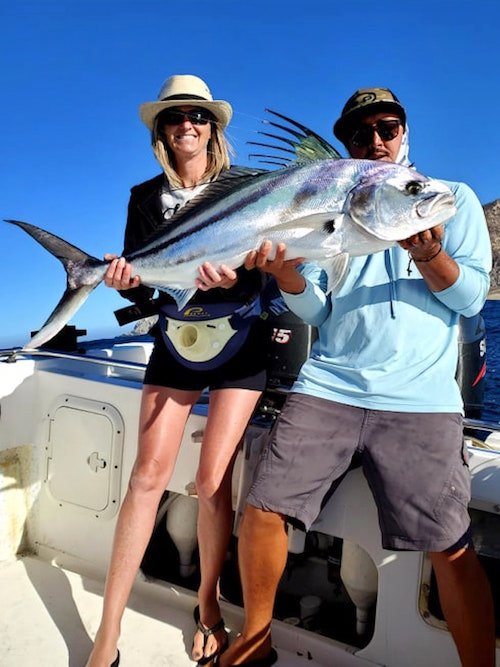 Captain Marc Spagnola of Dusk to Dawn Bowfishing is on vacation this week two, but just like me he’s got to go fishing while he’s gone. Captain Marc and his lovely bride caught and released jacks and eight roosterfish while in Cabo.