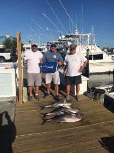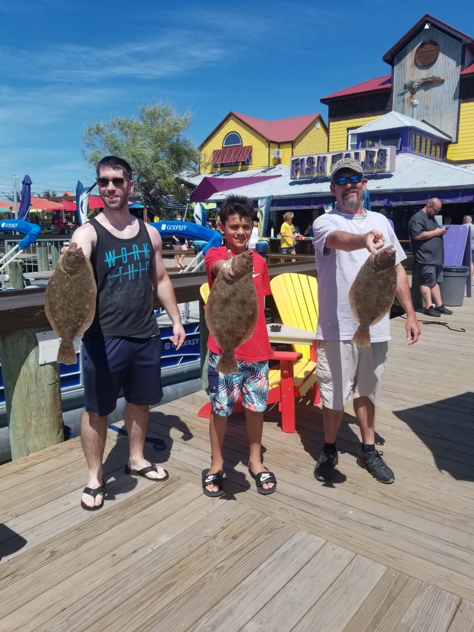 Captain Drew Zerbe of the Tortuga found some clean water and some flounder this afternoon and put Eric Jones from Salisbury, NC, Chase Foster from Germantown, MD and JIM Madden from Burke, VA on three nice keeper flounder up to 19 1/2″.
