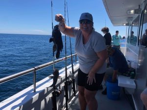 14 year old Gavin Glushakow had a fun time on the Pumpin’ Hard with Captain Mike Burt and mate David Burt when he landed his first ever yellowfin tuna.