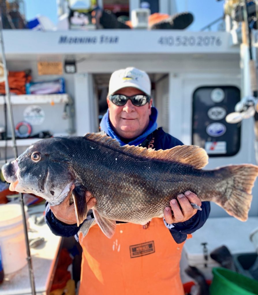 The Great American Outdoor Show in Harrisburg, PA is in the books now and it was a great 9 days of talking with folks about fishing in Ocean City and doing all of the other great things that the town has to offer. I sold a few rigs and the our charters booked a few trips so it was a great week. On the drive home last night I got a great fishing report from Captain Monty Hawkins of the Morning Star with some pics of some reely nice tog. I got home so late I wanted to save it for today so it gets the justice it deserves.