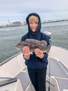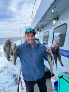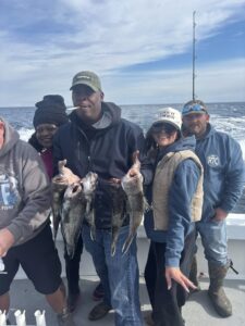 Captain Tony Battista and his anglers on Saltwater Adventures had a good day of ocean bottom fishing with sea bass, flounder and triggerfish.