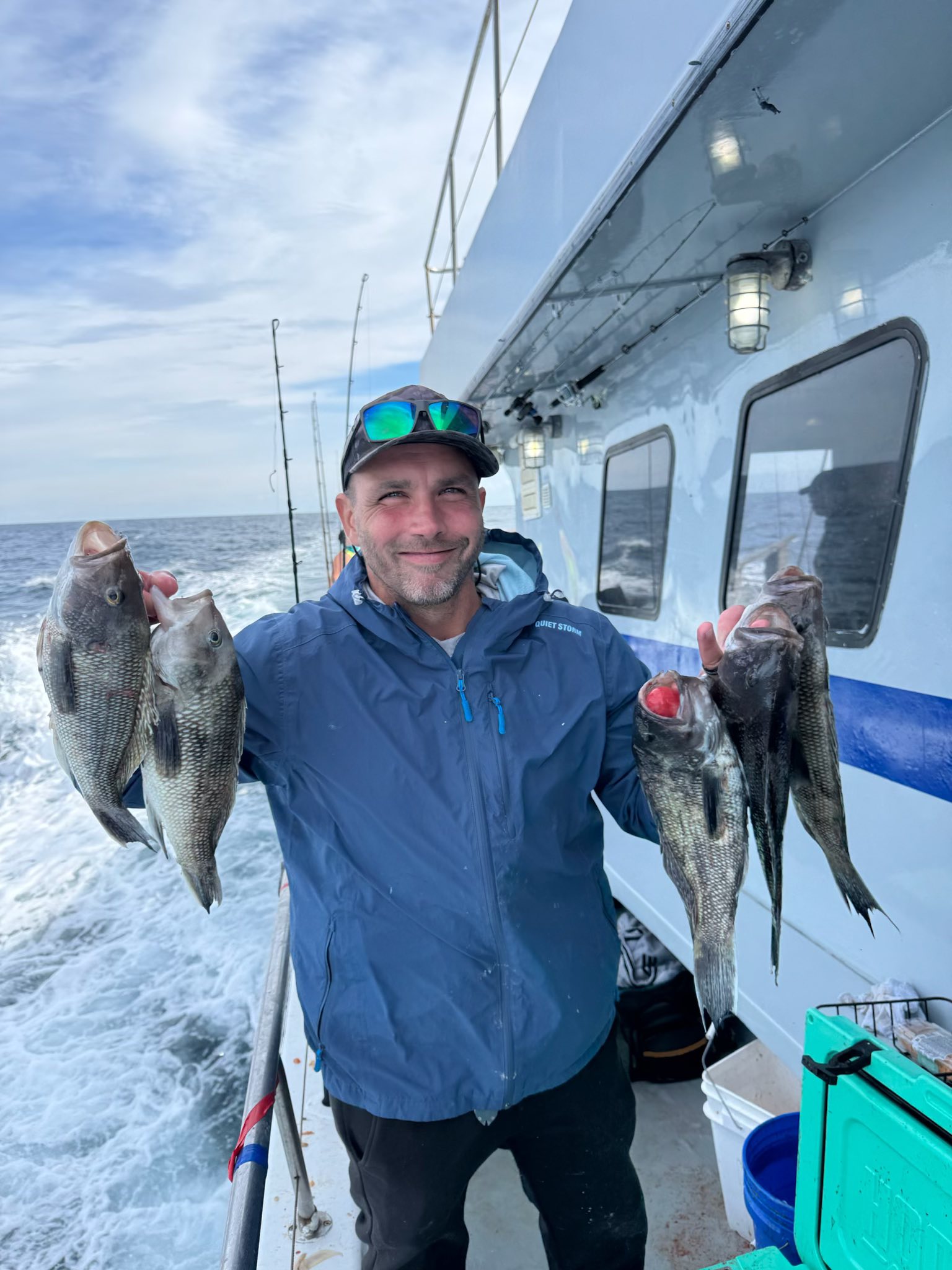 Captain Tony Battista and his anglers on Saltwater Adventures had a good day of ocean bottom fishing with sea bass, flounder and triggerfish.