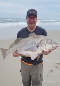 I got the best pic I’ve gotten in a couple of weeks today from Everett Lee McCabe who captured a reely nice black drum BEFORE they closed Assateague Island. Everett was fishing with Brian Ford, Erik Pereyra and Michaela Porchis when he landed this beauty of a 41″ black drum on a sand flea / Fishbites® combo. Unfortunately the guys won’t be going back to the island until it opens back up.