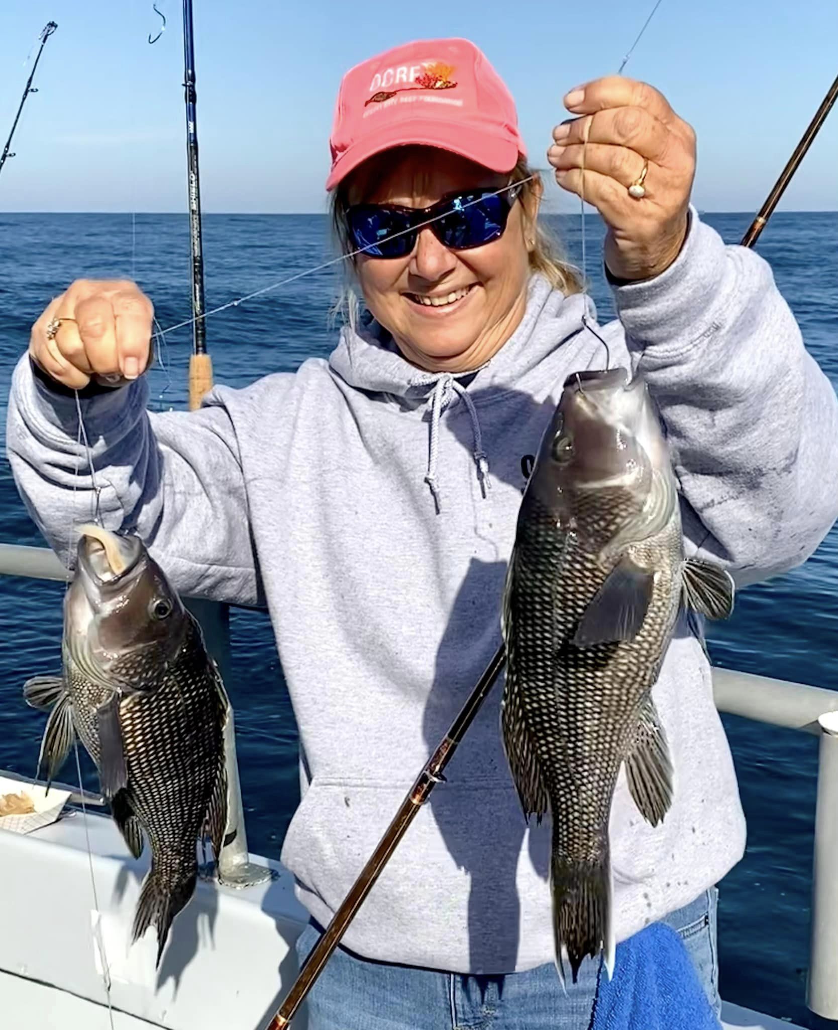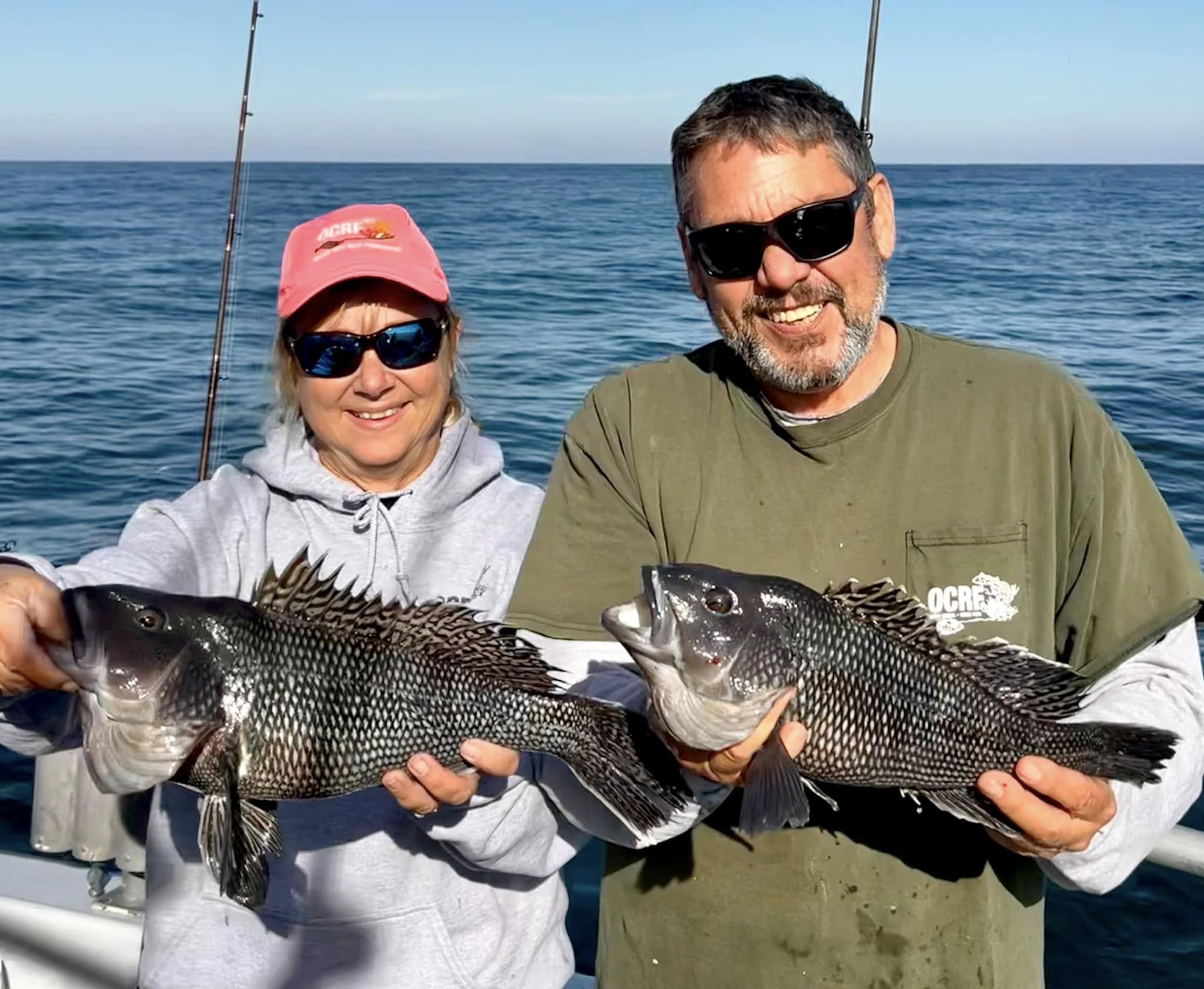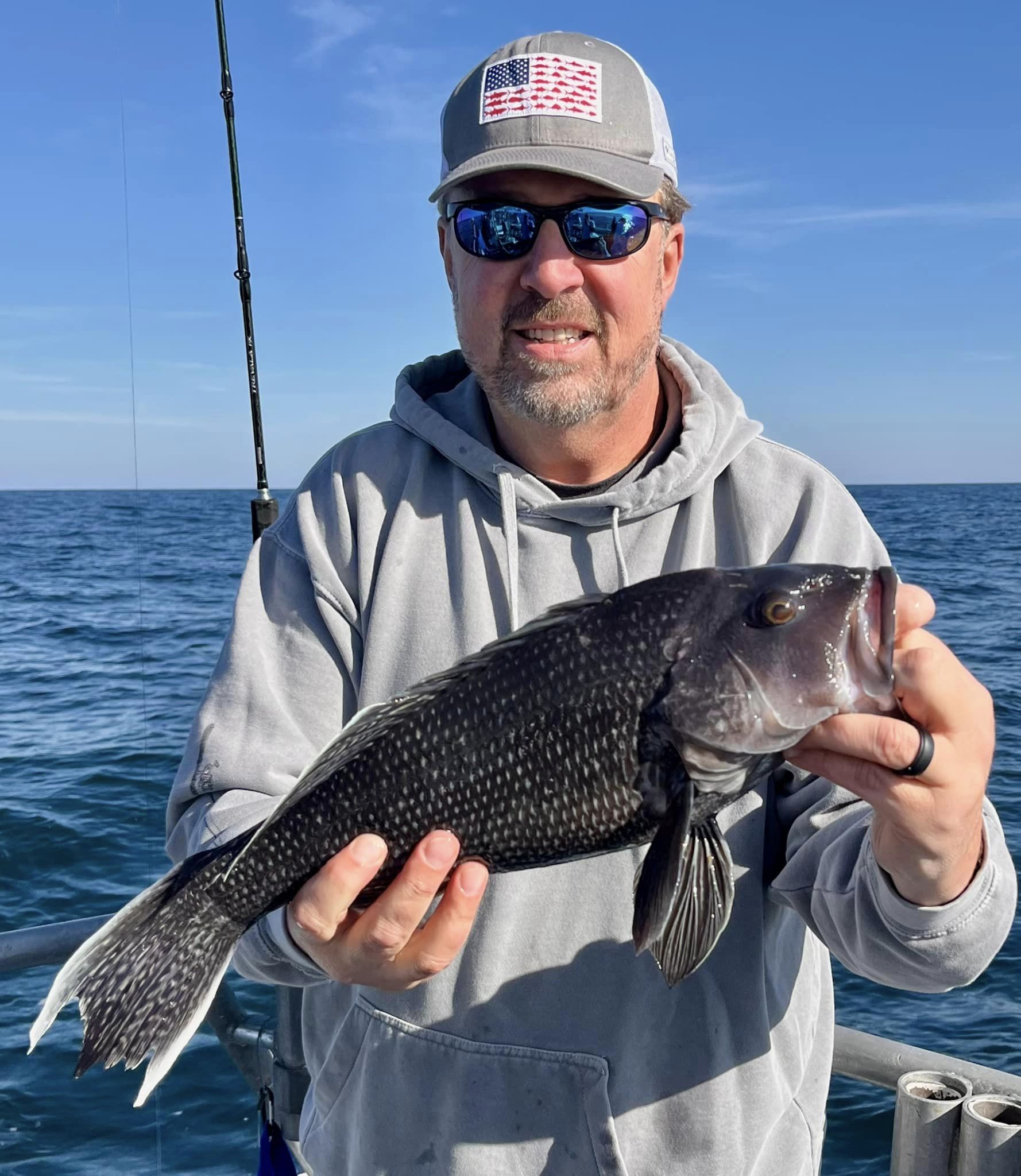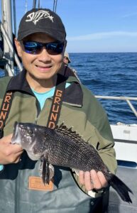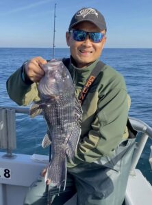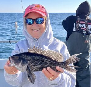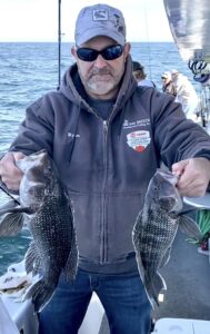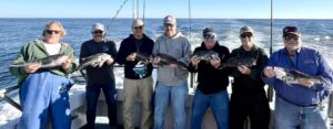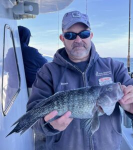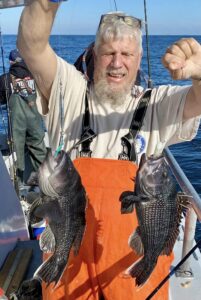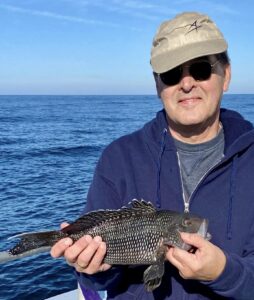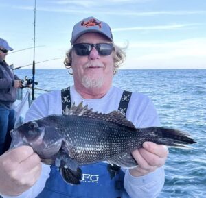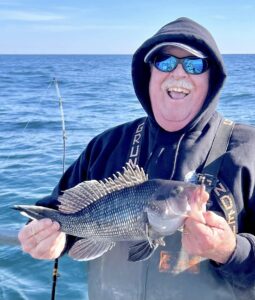 Captain Monty Hawkins of the Morning Star headed off the beach a bit today, but it was worth the trip with some very nice sea bass coming aboard.