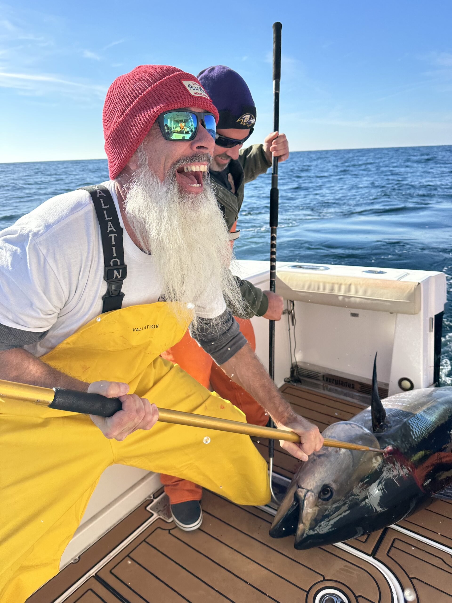 We had a chilly start to the day this morning, but by early afternoon it was short sleeves and Christmas lights. The ocean was an inviting calm and there was some seriously good bluefin tuna fishing. Captain Dale Lisi of Foolish Pleasures was first to report in at 9:45 AM where he was already 4 for 5 bites on bluefin with some very nice fish in the mix.