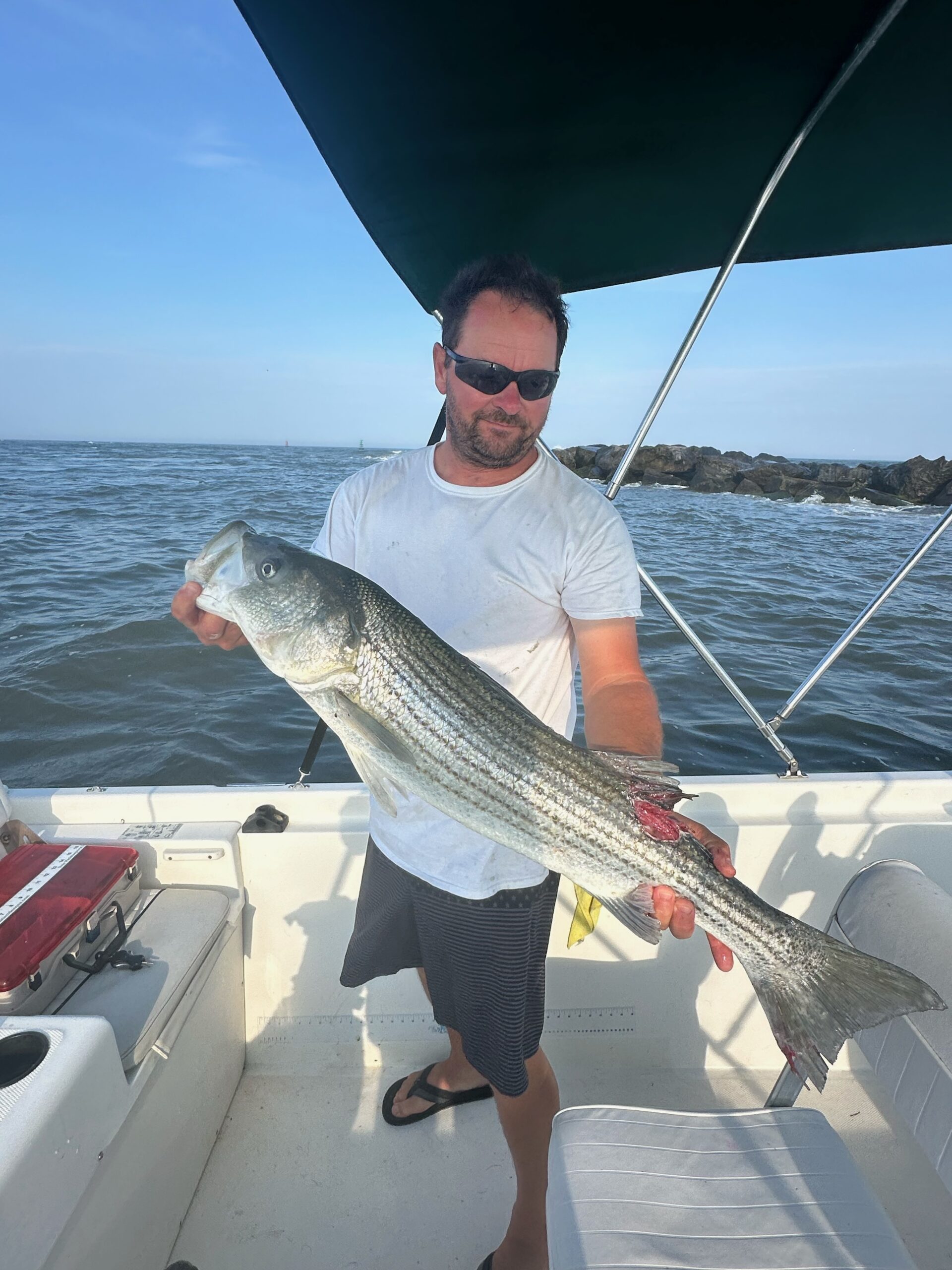 Captain Monty Hawkins of the Morning Star headed to the barn early thanks to the building seas, but he still put some sea bass in coolers per usual.