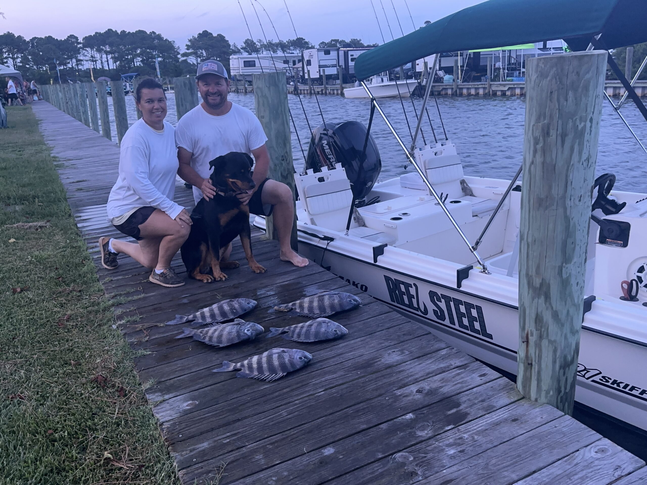 JD And Mary Eddy were fishing on board Reel Steel Charters today when the landed 5 nice sheepshead and had a 32” throwback striper.